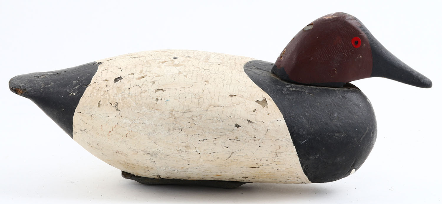 Canvasback Drake by unknown maker, PE, solid wood, repaint, structurally excellent. Grade: Excellent - Value: 20 to 60