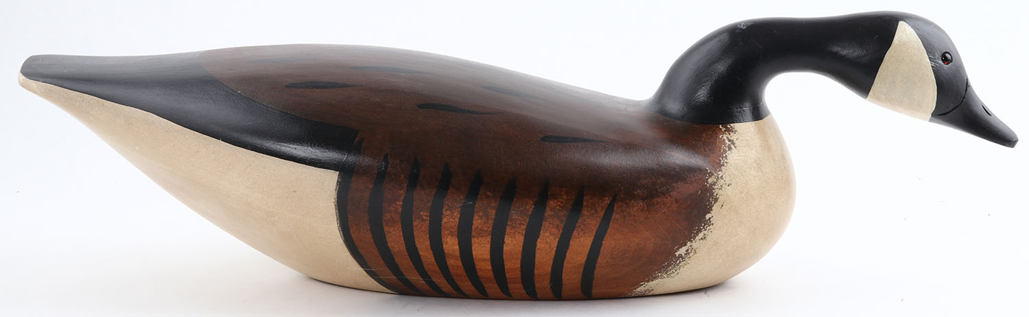 Swimming Canada Goose by Hadlby Co., GE, solid wood, original paint, structurally excellent, 22'' OAL. Grade: Excellent ++ - Value: 30 to 90