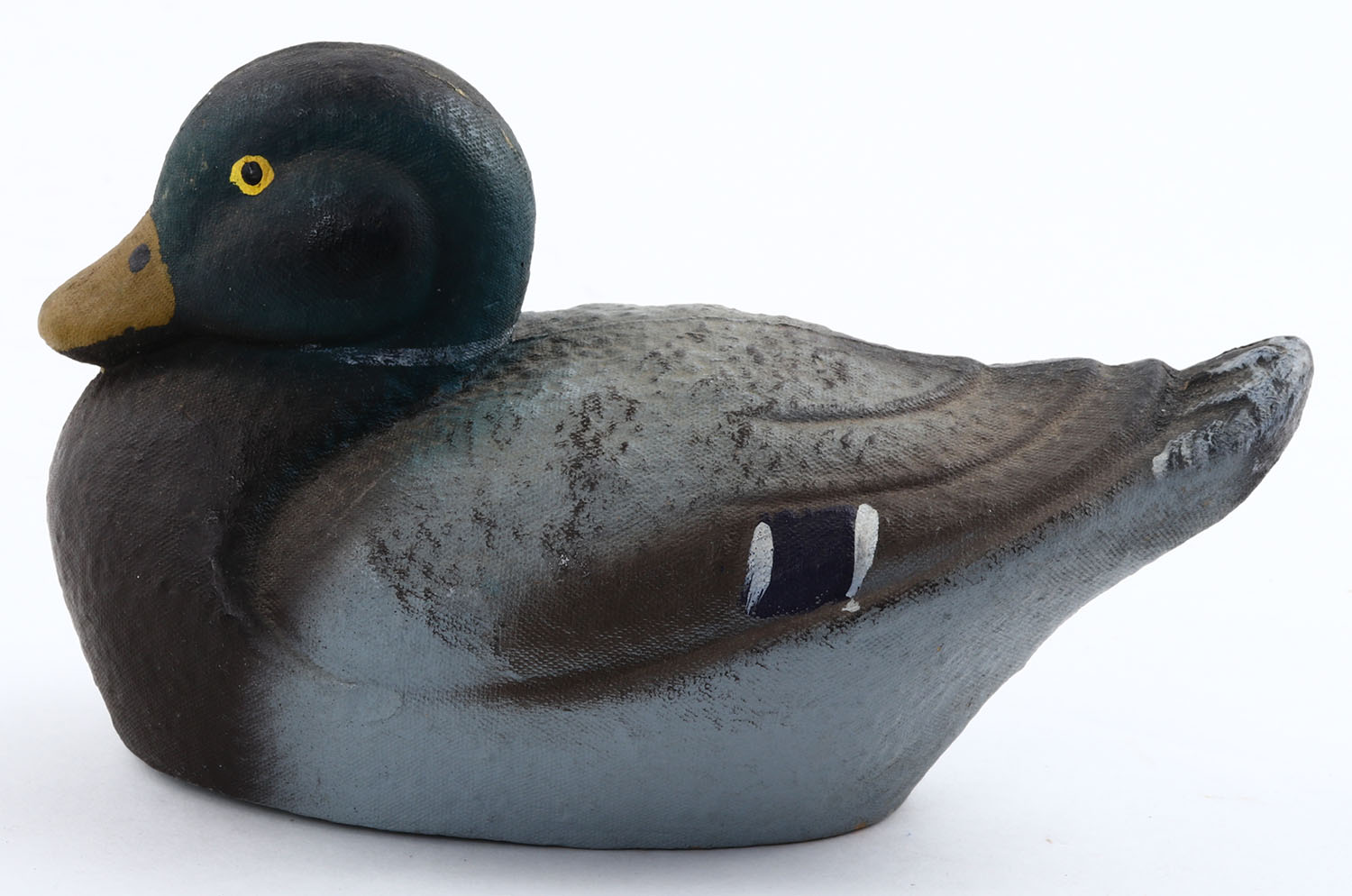 SALESMAN SAMPLE Mallard Drake by Ariduk General Fiber Co, Model 375, circa 1949-1975, PE, mint original paint, this is the larger size of the salesman samples, 7'' OAL. Grade: Excellent ++ - Value: 40 to 200