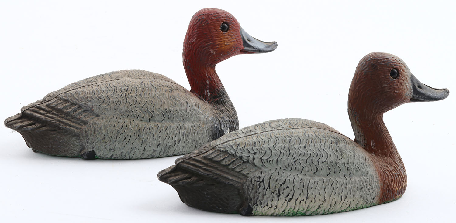 Pair of SALESMAN SAMPLE Redheads by Sport Plast or Carry Lite, PE, mint original paint, 6'' OAL. Grade: Excellent ++ - Value: 20 to 60