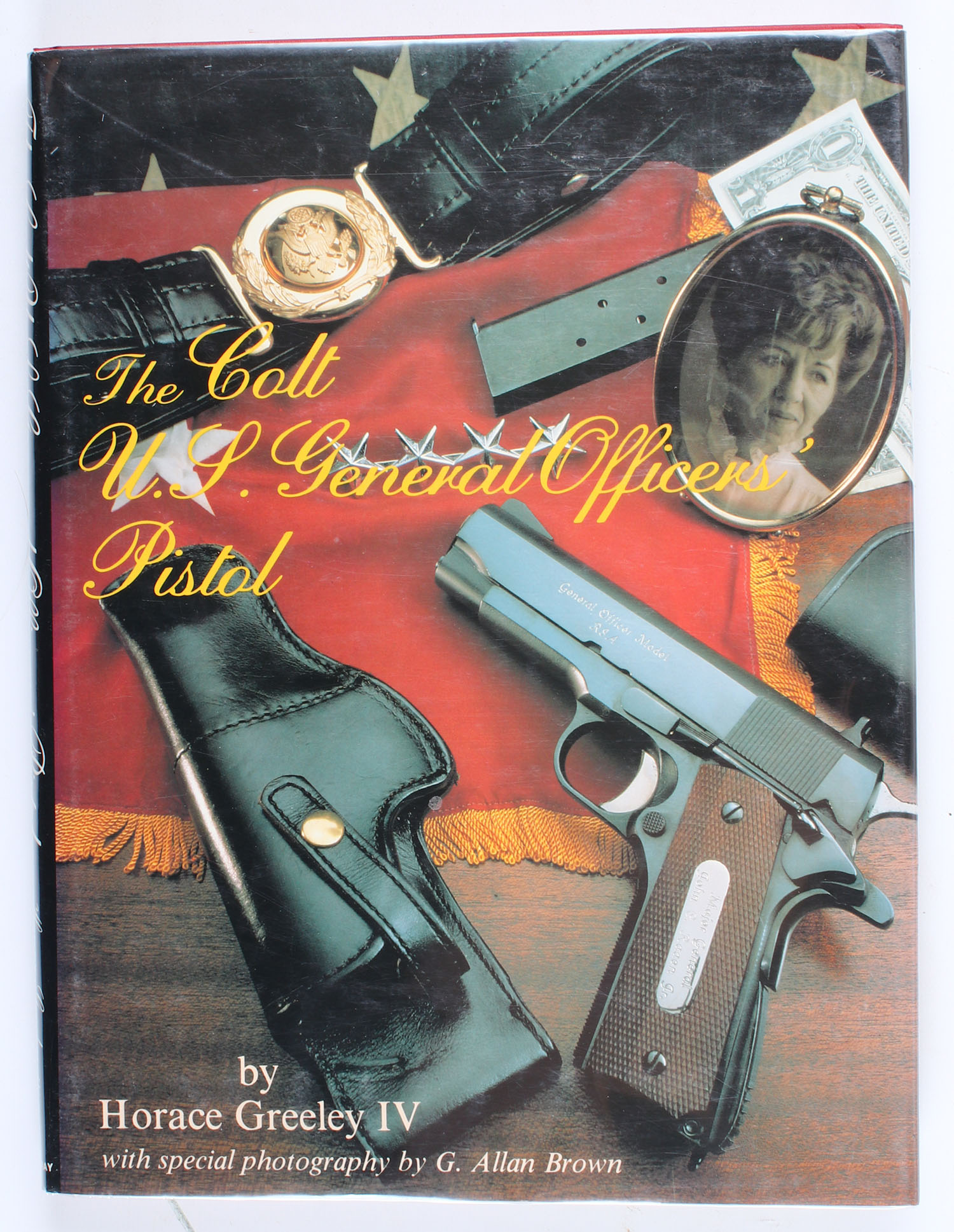 The Colt U.S. General Officers' Pistol by Horace Greeley IV 1989, 8 1/2 '' x 11''. 199 pages, pages clean, binding tight, hardcover and dustjacket mint. Value: $80 Grade: MINT - Value: 4 to 80