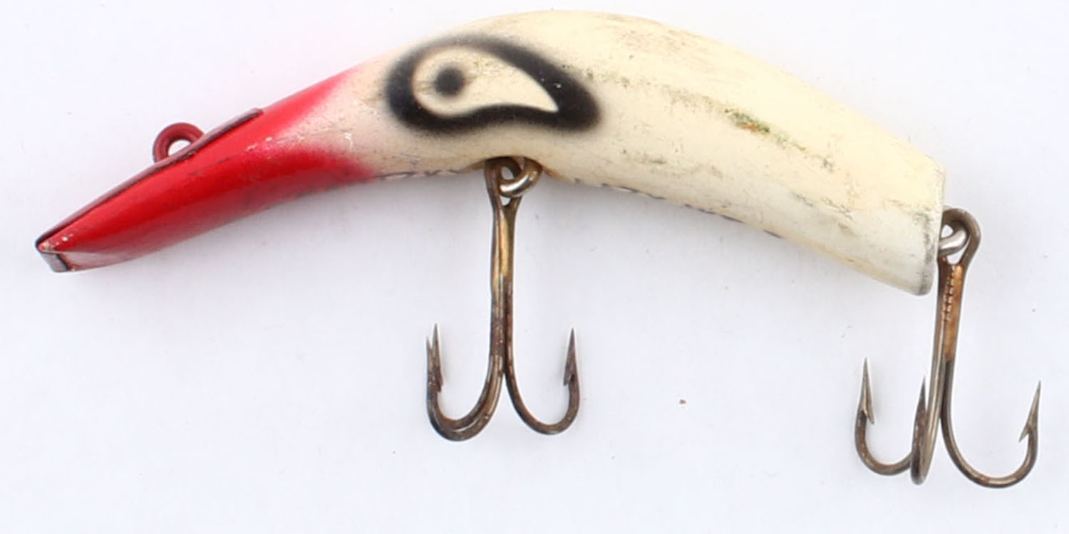 | Kautzky Lazy Ike-3, wood lure, PE, red & white, marked on botto...