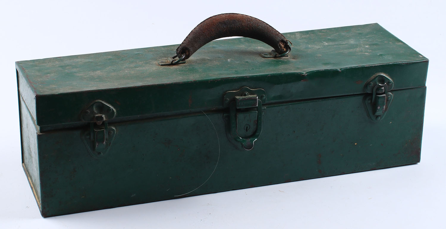 Kennedy, metal tackle box, with an assortment of fishing tackle. Grade: Fair++ - Value: 10 to 50