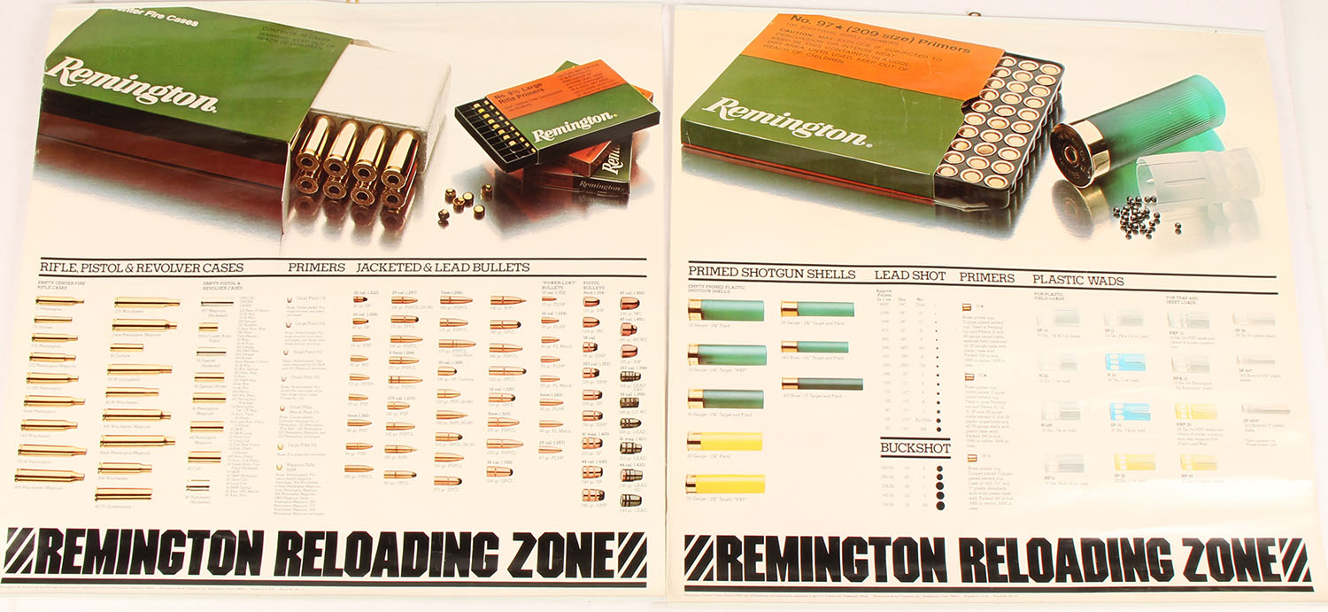 Lot of 2 Remington Posters, one for centerfire & one for shotshells, both have full color images, great colors, wrinkling, edge & corner wear. Grade: Very Good+ - Value: 10 to 40