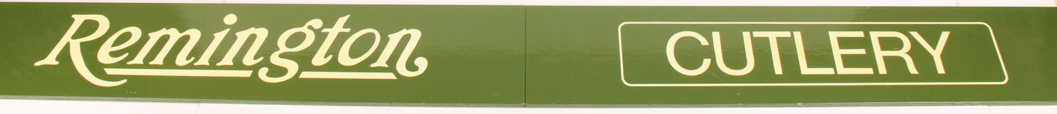 Remington Folding Wood Sign, ''Remington Cutlery'', has hinge in the middle, excellent overall. Grade: Excellent ++ - Value: 50 to 250