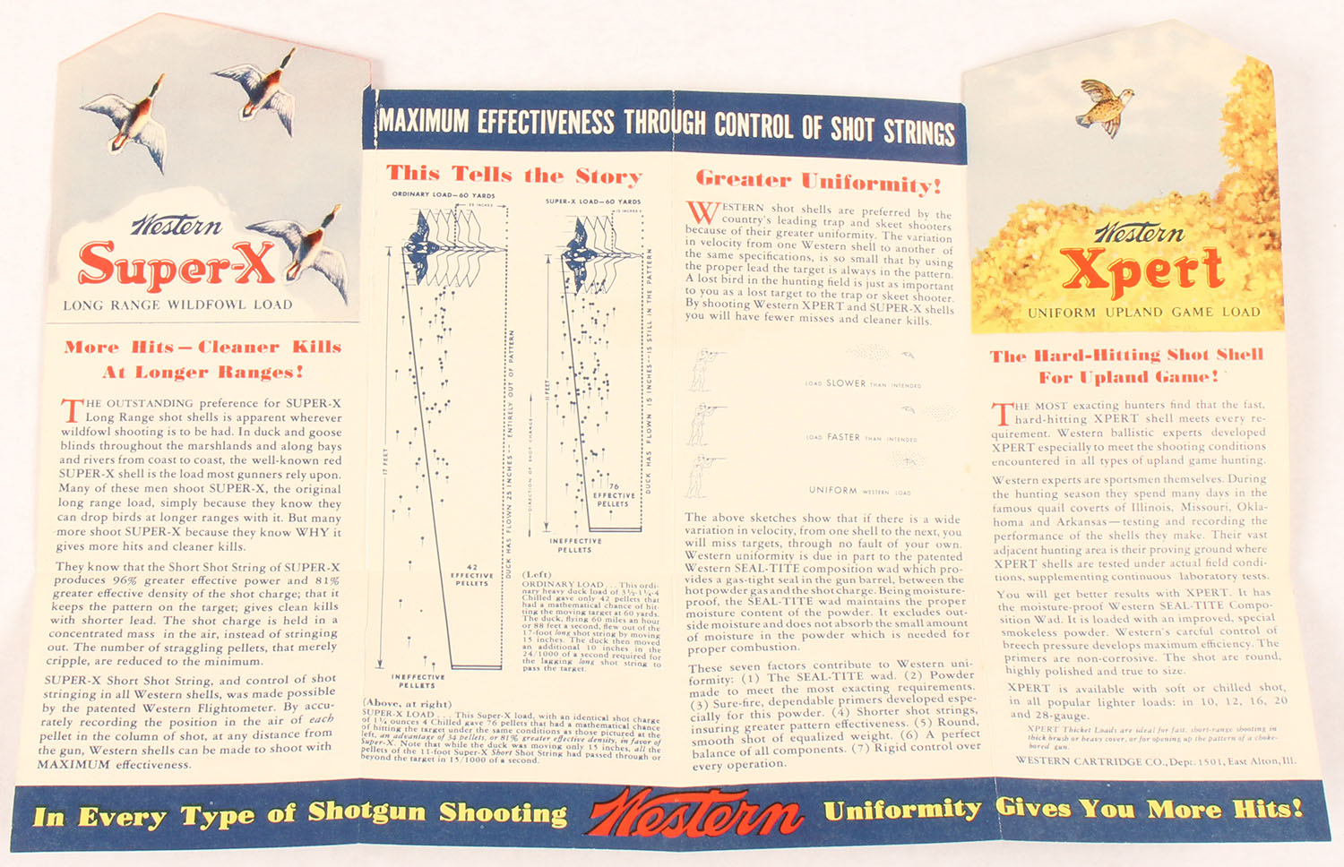 Western Shotgun Shells Brochure, features Super-X & Expert Shells. Grade: Excellent - Value: 10 to 50