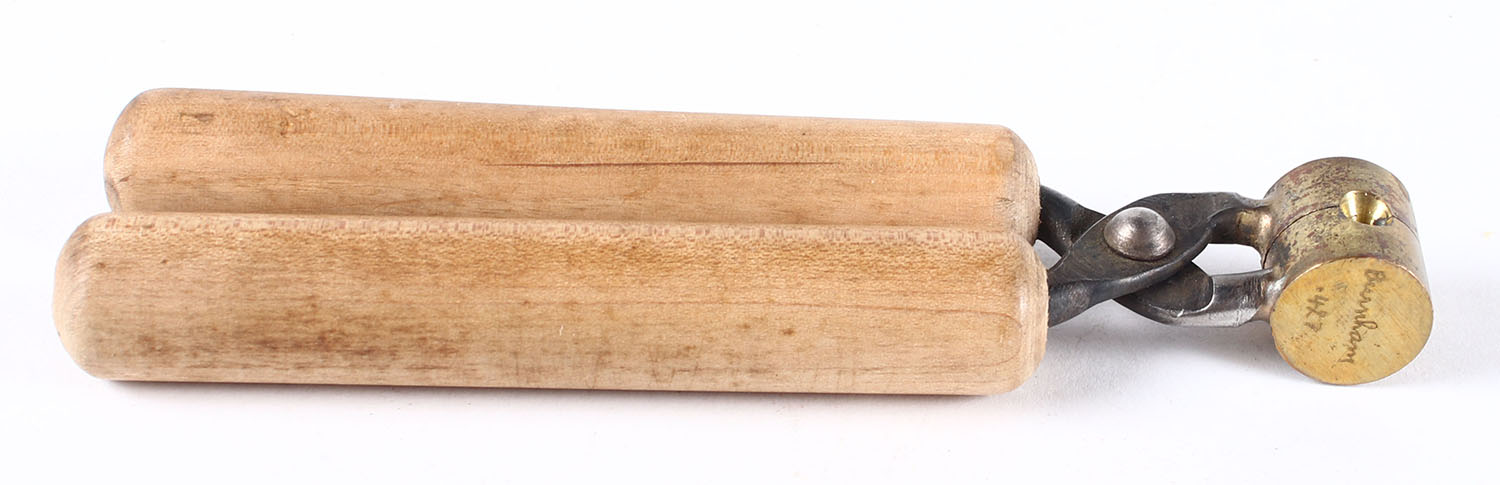 RARE! Mark B Burnharm bullet molds, made in Savannah, Georgia ca 1950-1968, this tool not dated and .427 cal., blonde wood handles. Grade: Excellent TQ - Value: 40 to 80