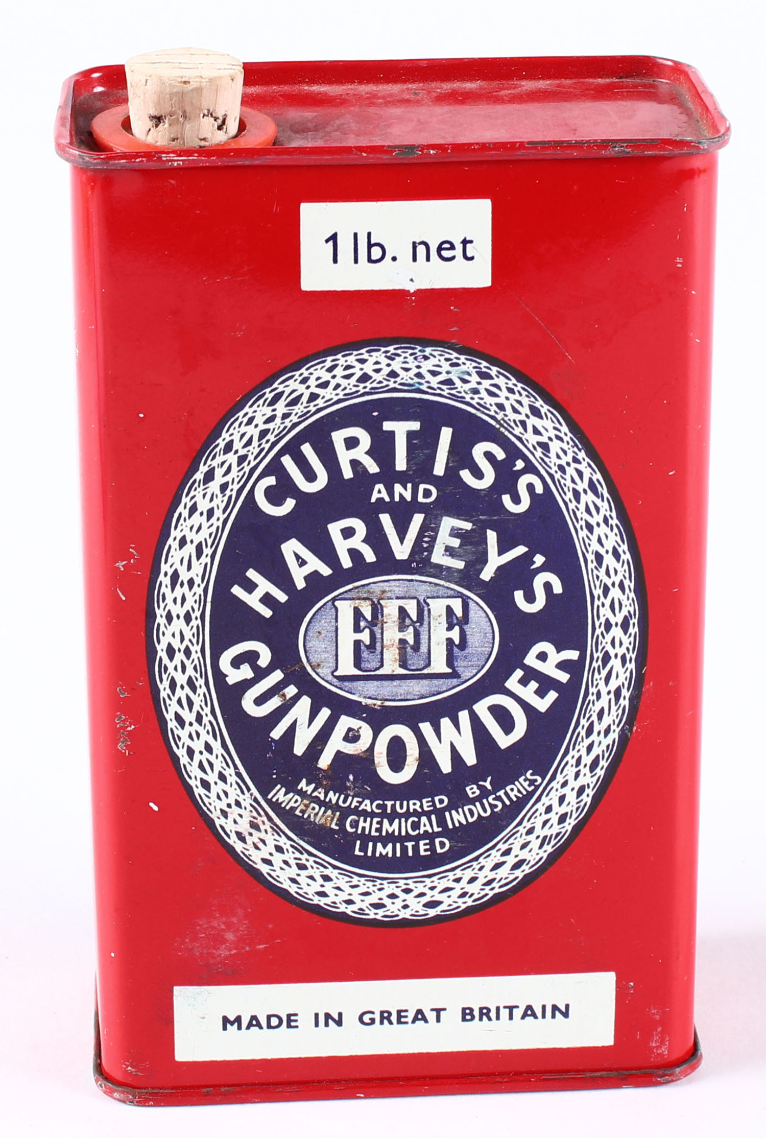 Curtis and Harveys Gunpowder FFF, ICI, solid, with great color, empty, made in Great Britain. Grade: Excellent - Value: 10 to 100