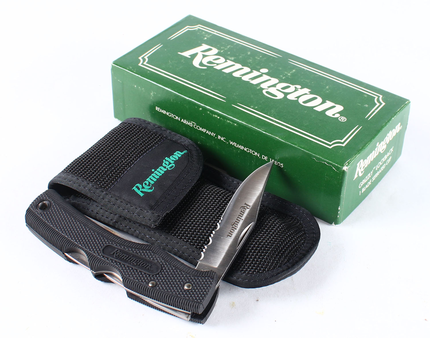 Remington grizzly knife, 3.5'' blade, in original box. Grade: Excellent ++ - Value: 20 to 60