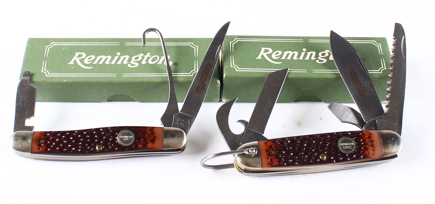 Lot of 2 Remington knives, in original boxes, R1 upland and R4 utility. Grade: Excellent ++ - Value: 30 to 90