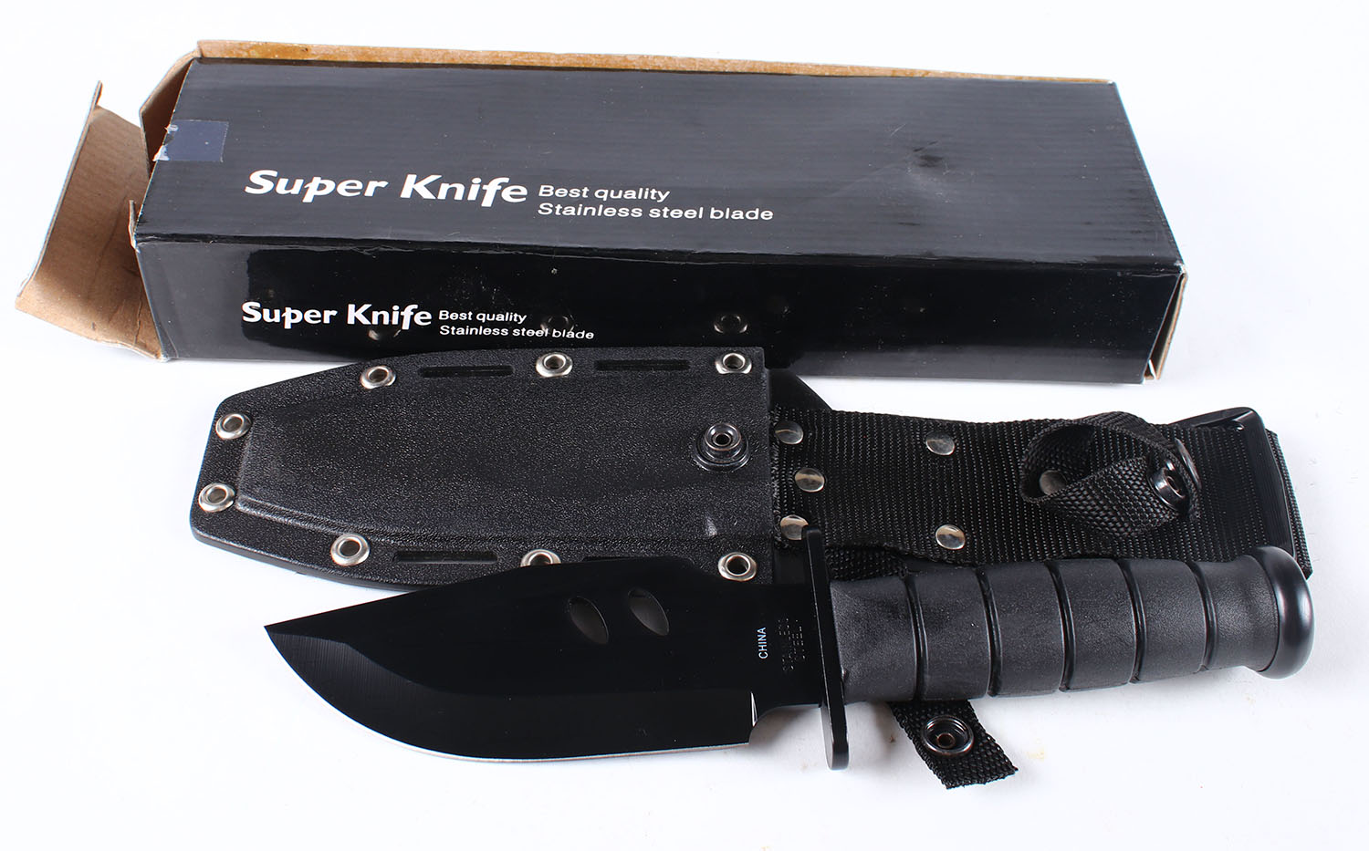 Super Knife fixed blade knife, in original box, 5.5'' blade. Grade: Excellent ++ - Value: 2 to 50