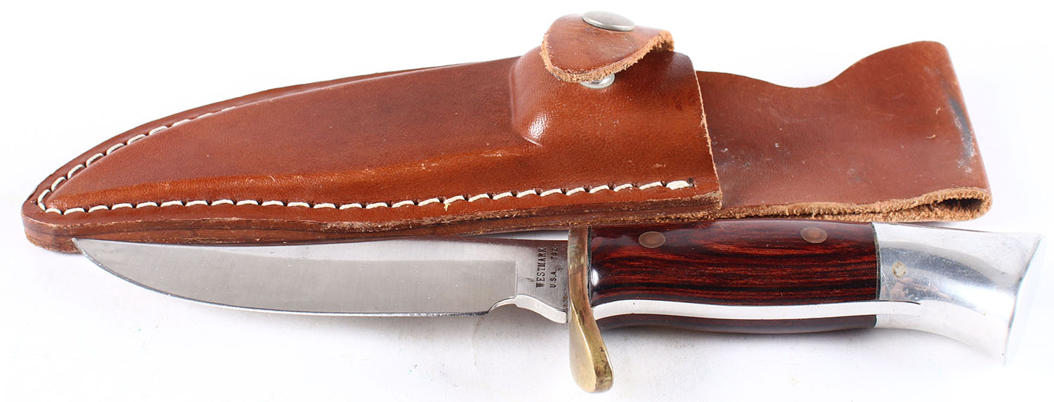 Westmark knife, fixed blade, has leather sheath, 4.5'' blade, #900061. Grade: Excellent ++ - Value: 40 to 100