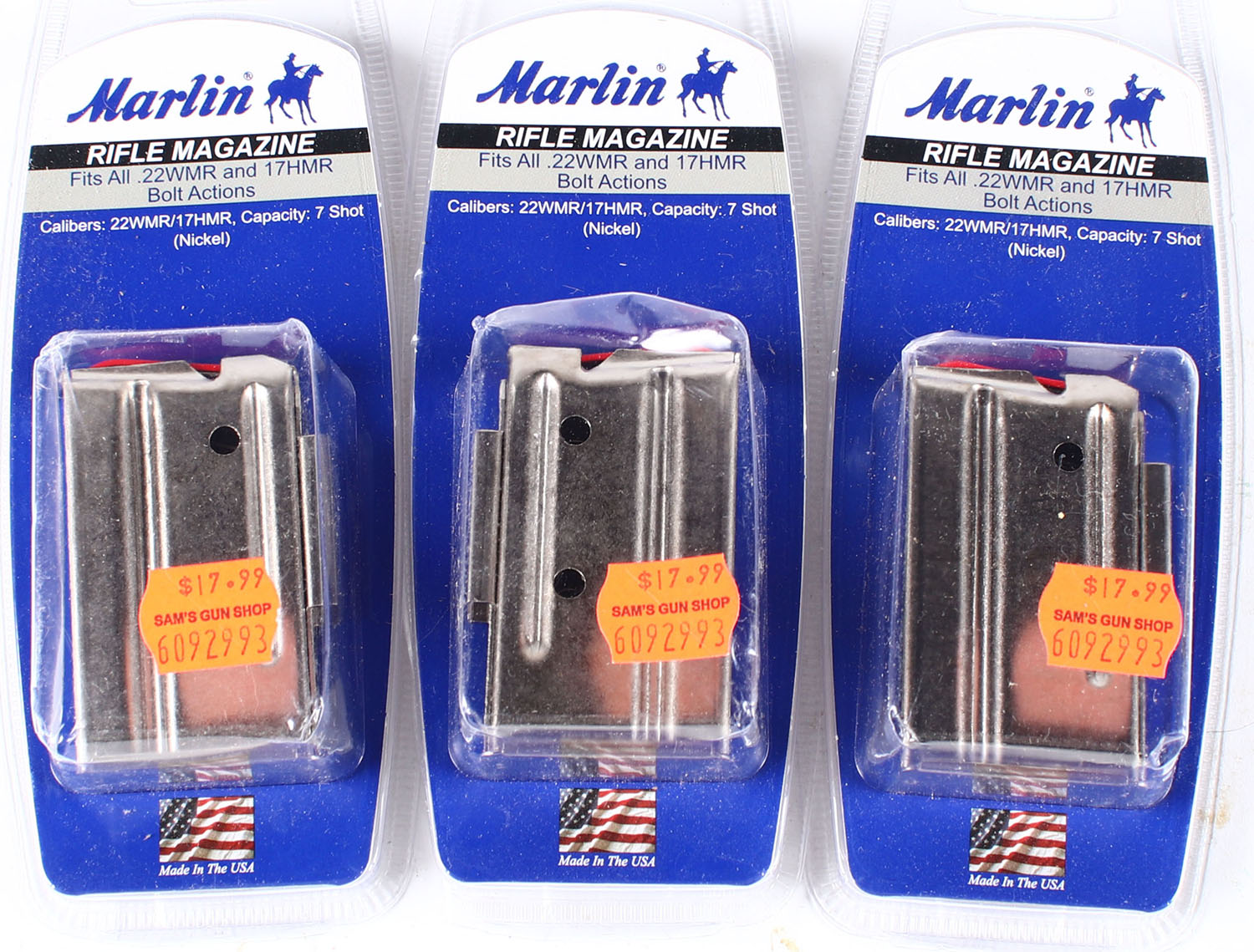 Lot of 3 Marlin fits 17HMR and 22WMR 7 rd mags. Grade: Excellent ++ - Value: 20 to 60