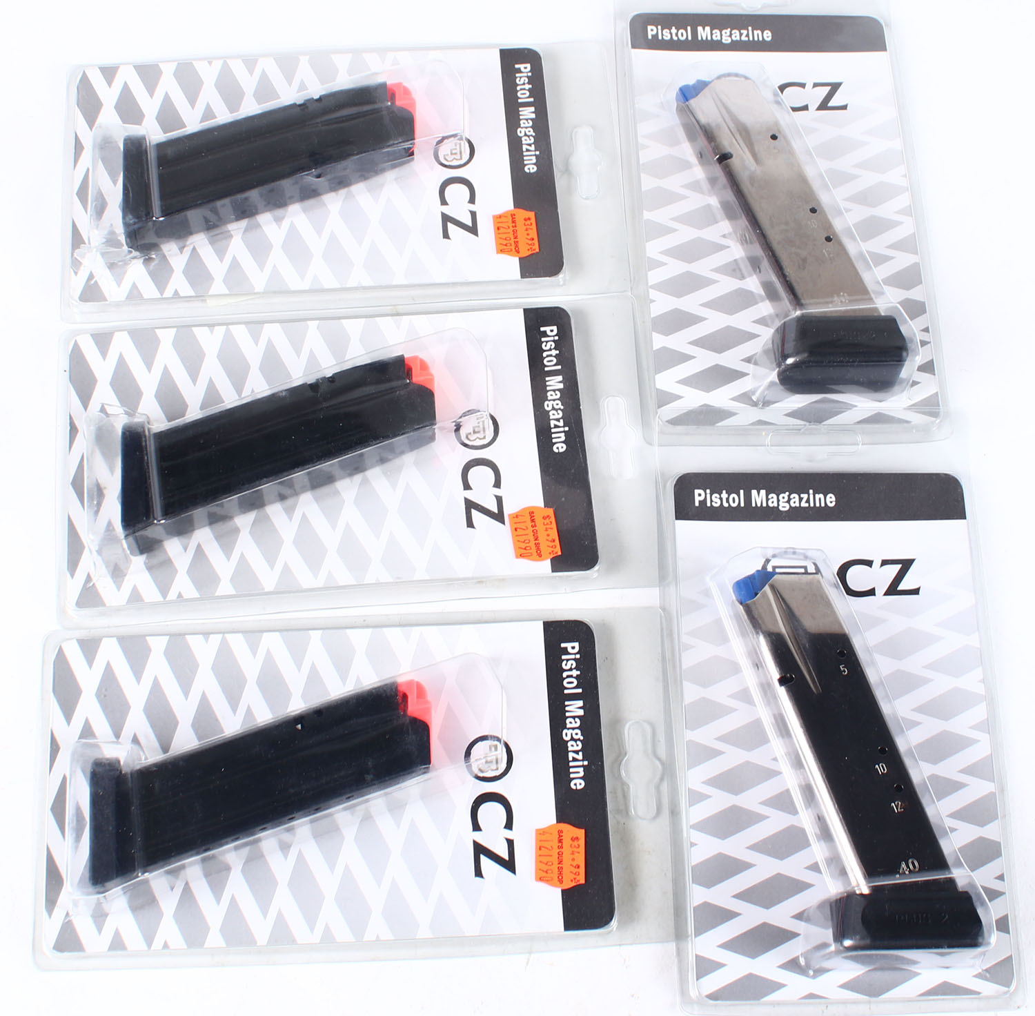 Lot of 5 CZ pistol mags, (3) 9mm 15 rd mags and (2) 9mm 19 rd mags. Grade: Excellent - Value: 40 to 100