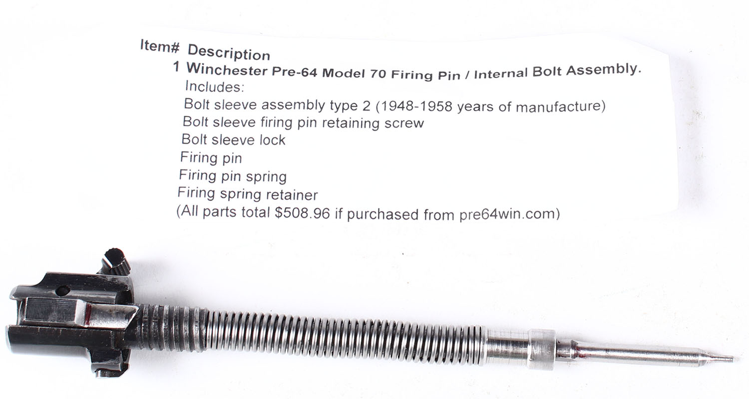 Winchester Pre-64 Model 70 firing pin/internal bolt assembly. Grade: Excellent - Value: 100 to 500