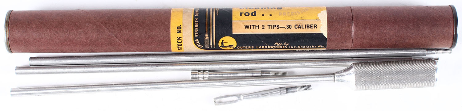 Outers rifle cleaning rod, in cardboard tube for .30 cal rifles. Grade: Excellent - Value: 10 to 50