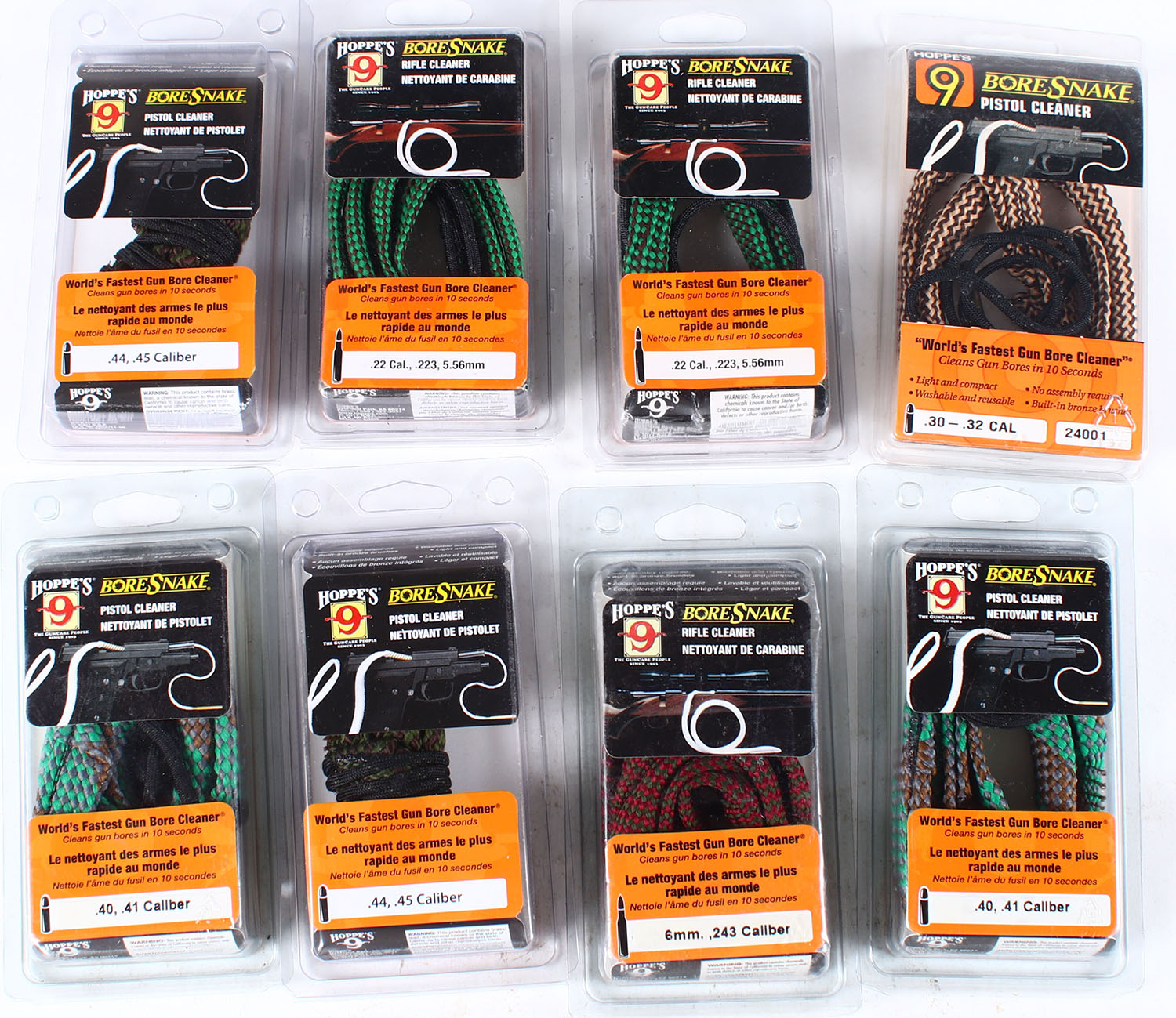Lot of 8 Hoppes Bore snake various calibers. Grade: MINT - Value: 50 to 100