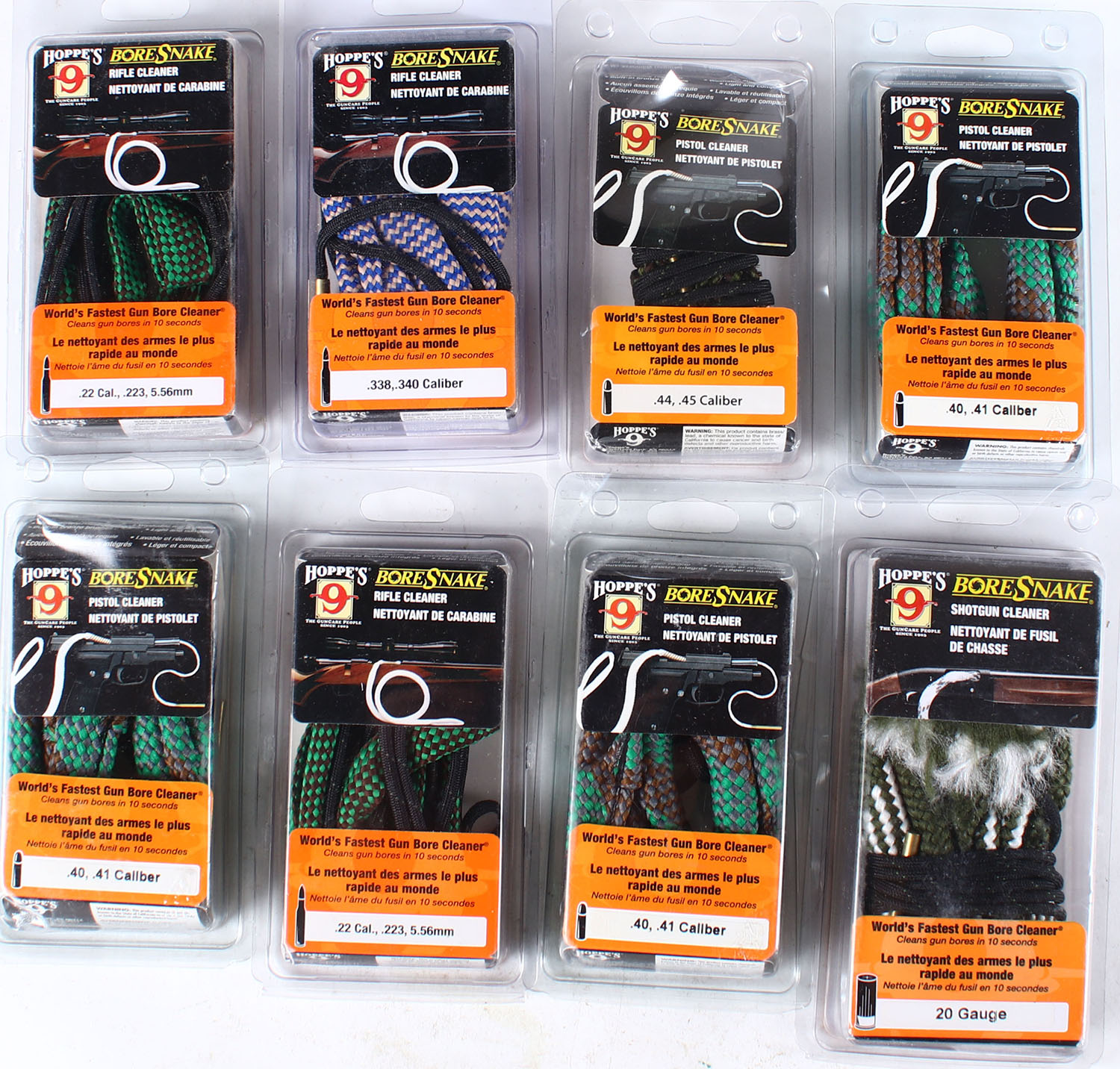 Lot of 8 Hoppes Bore snake various calibers. Grade: MINT - Value: 50 to 100