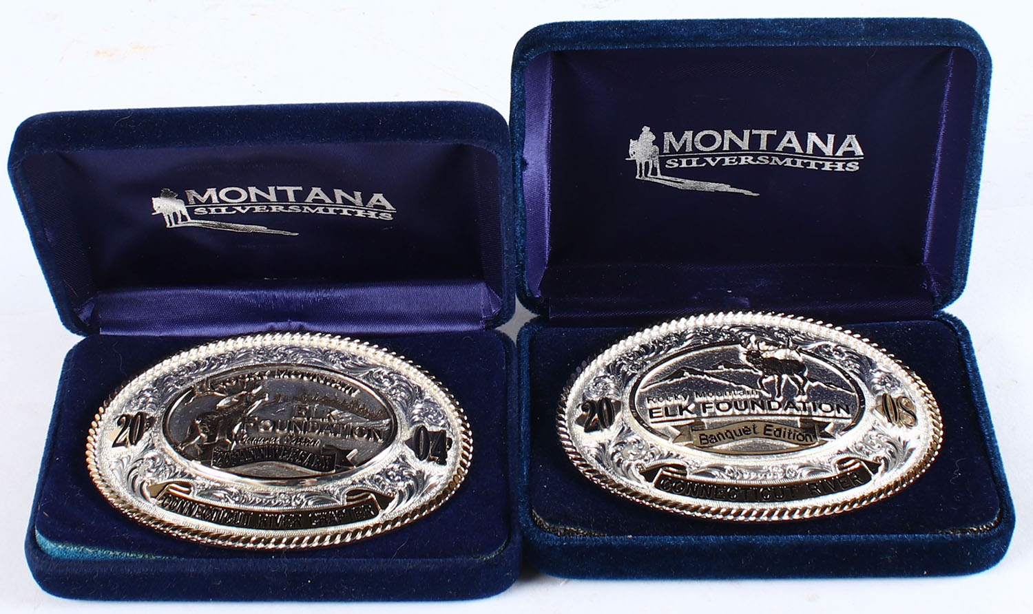 Lot of 2 RMEF belt buckles, in case. Grade: Excellent - Value: 20 to 80