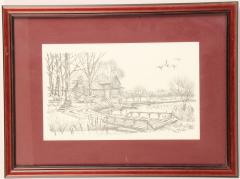 8104 Terry Redlin pencil sketch, pictures a sketch of a cabin, pond ... $12 2 Auction is complete