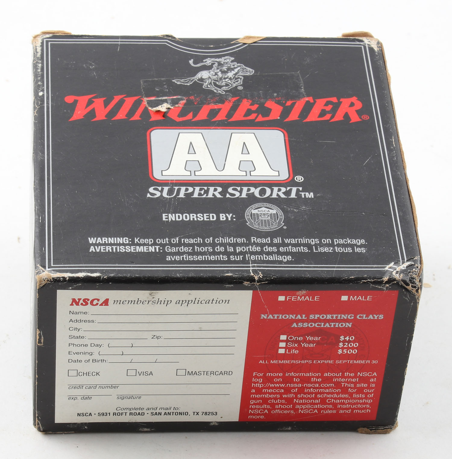 Winchester, Double A, Super Sport, 12ga., 1pc., shot size 8, Full, multi-colored box, box is very solid, plastic shells are excellent. Grade: Excellent - Value: 10 to 30