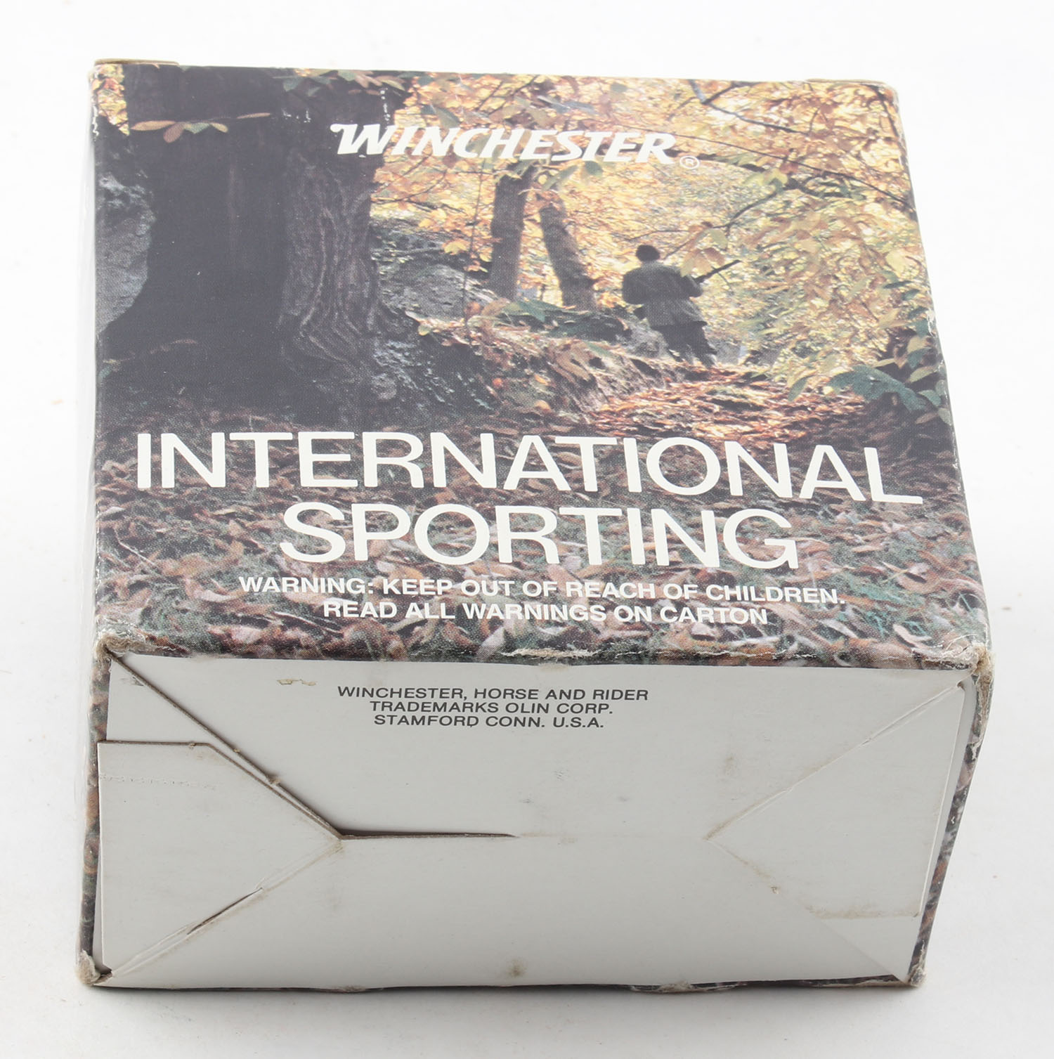 Winchester, International Sporting, 12ga., 1pc., Full, shot size 7 1/2, 2 3/4'', box is very solid with excellent color, plastic shells are excellent. Grade: Excellent - Value: 10 to 40
