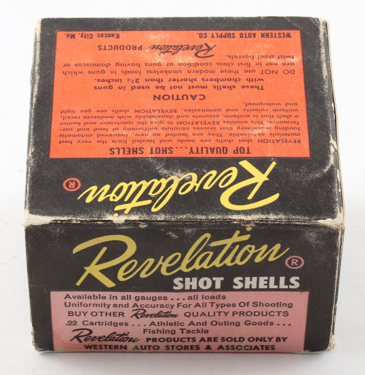 Revelation, Maximum Load, 16ga., 1pc., Full, shot size 5, multi-colored box, box has edge & corner wear with great colors, paper shells are excellent. Grade: Very Good ++ - Value: 10 to 30