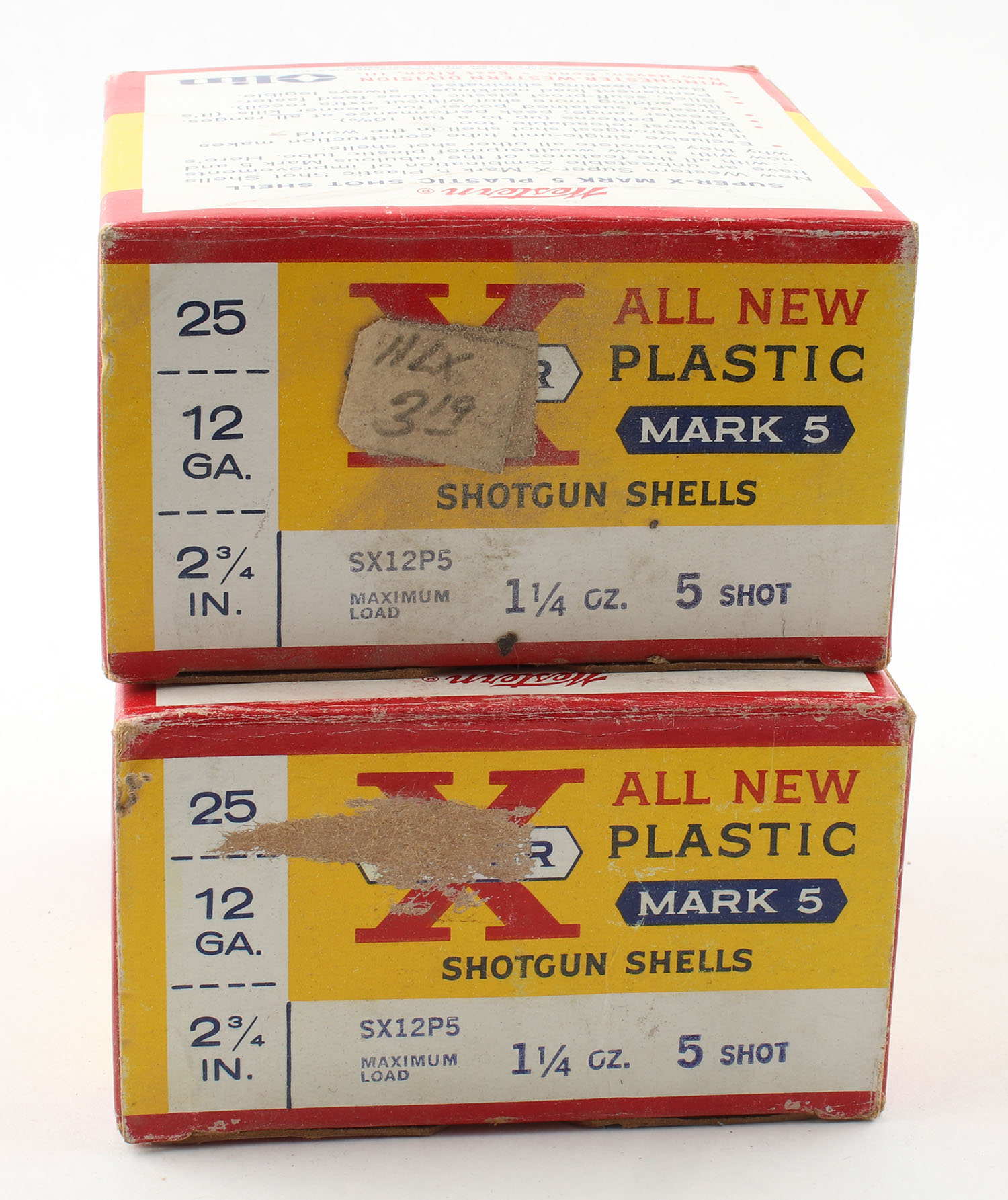 Lot of 2 Western, 12ga., 1pc., Appears Full, shot size 5, multi-colored box. Grade: Excellent - Value: 10 to 40