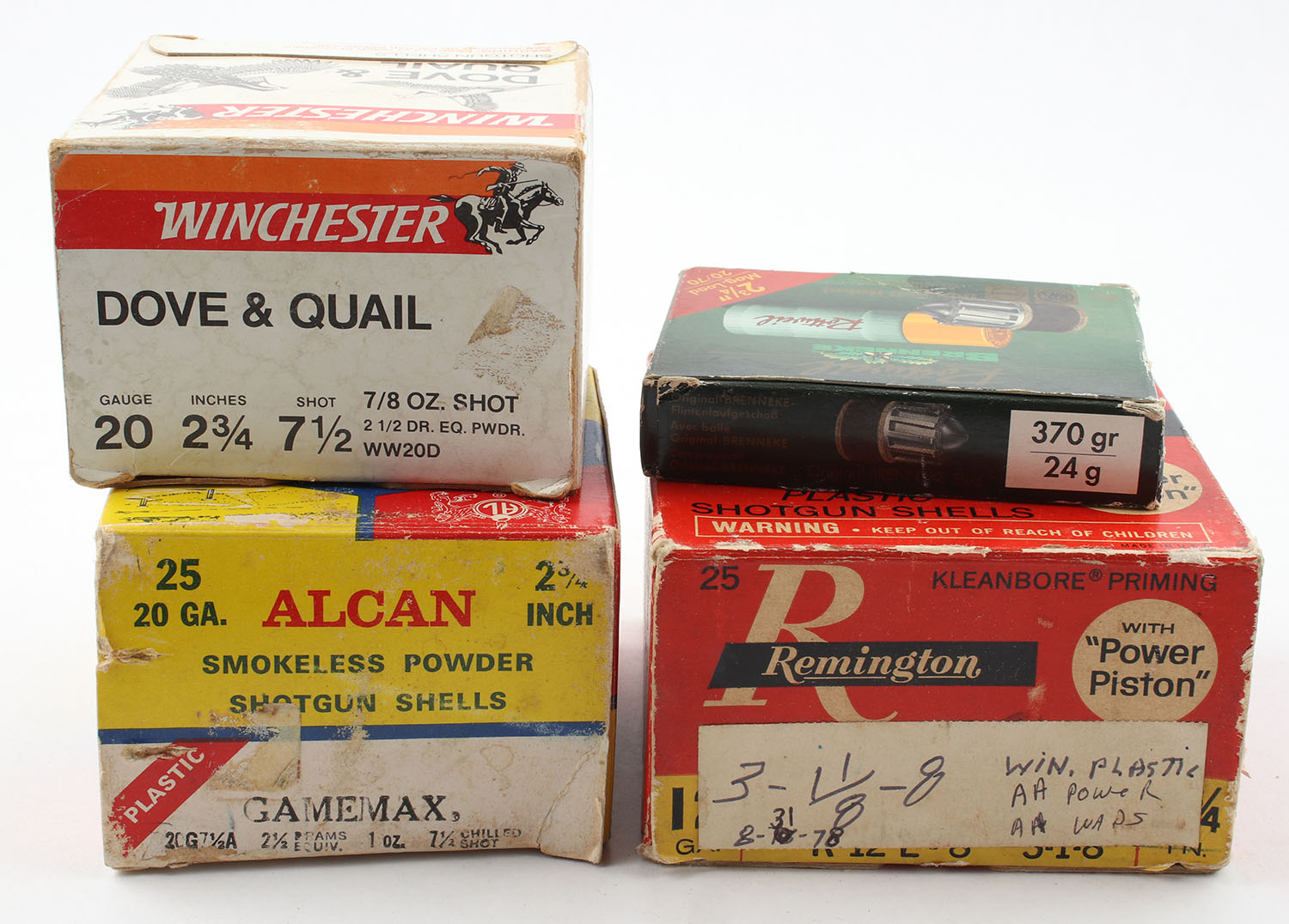 Lot of 4, Mixed Manufacture, 12 & 20ga., Appears Full of mixed shells, Shotshell boxes. Grade: Good ++ - Value: 8 to 30