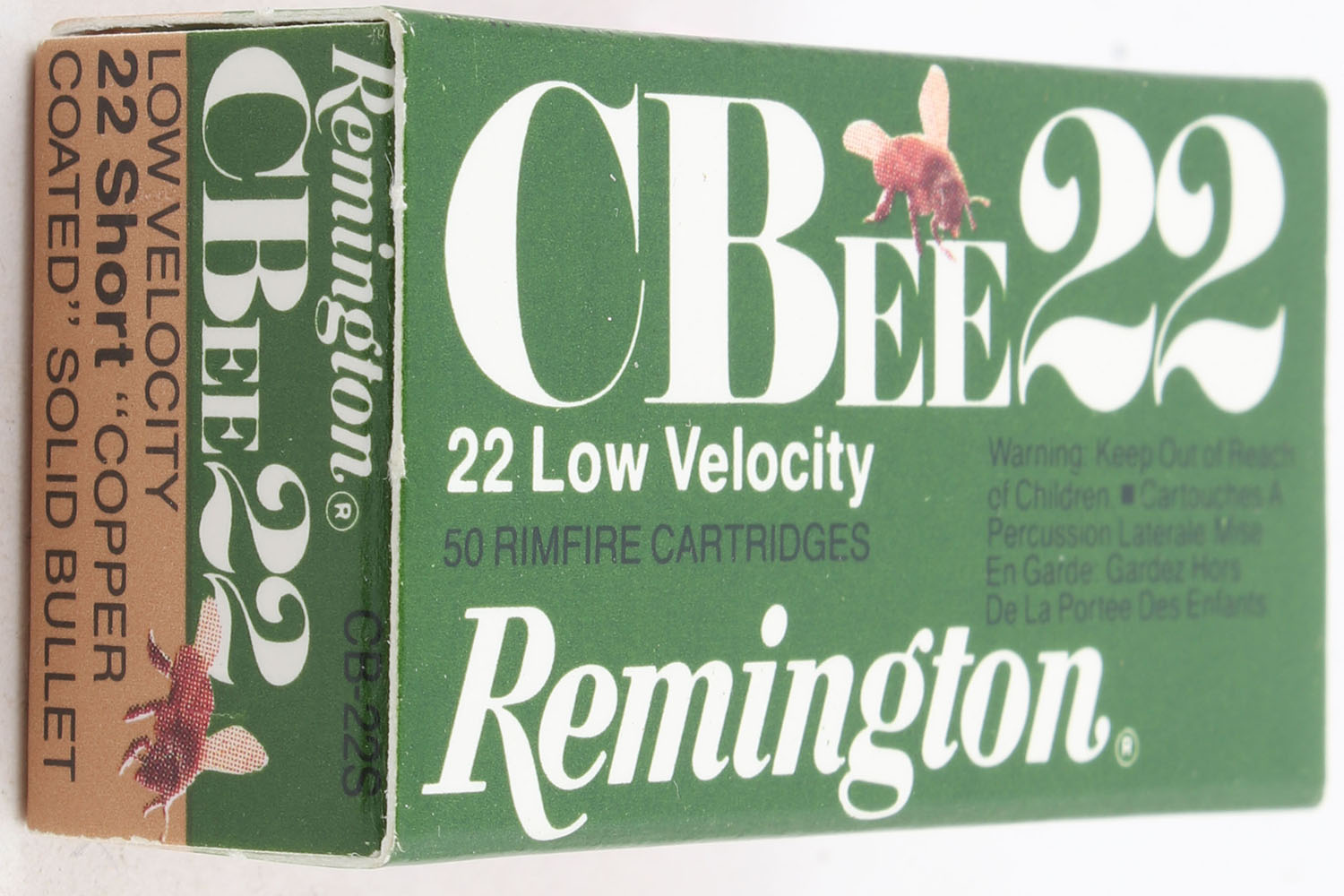Remington, CBee22, .22 Short, Low Velocity, RHWeb: REM-31 S-1B, Full, 1pc. Green bronze & white box, box is MINT with minty color, corners are sharp, edges are crisp, end flaps are solid, ammo is mint. Grade: MINT - Value: 10 to 15