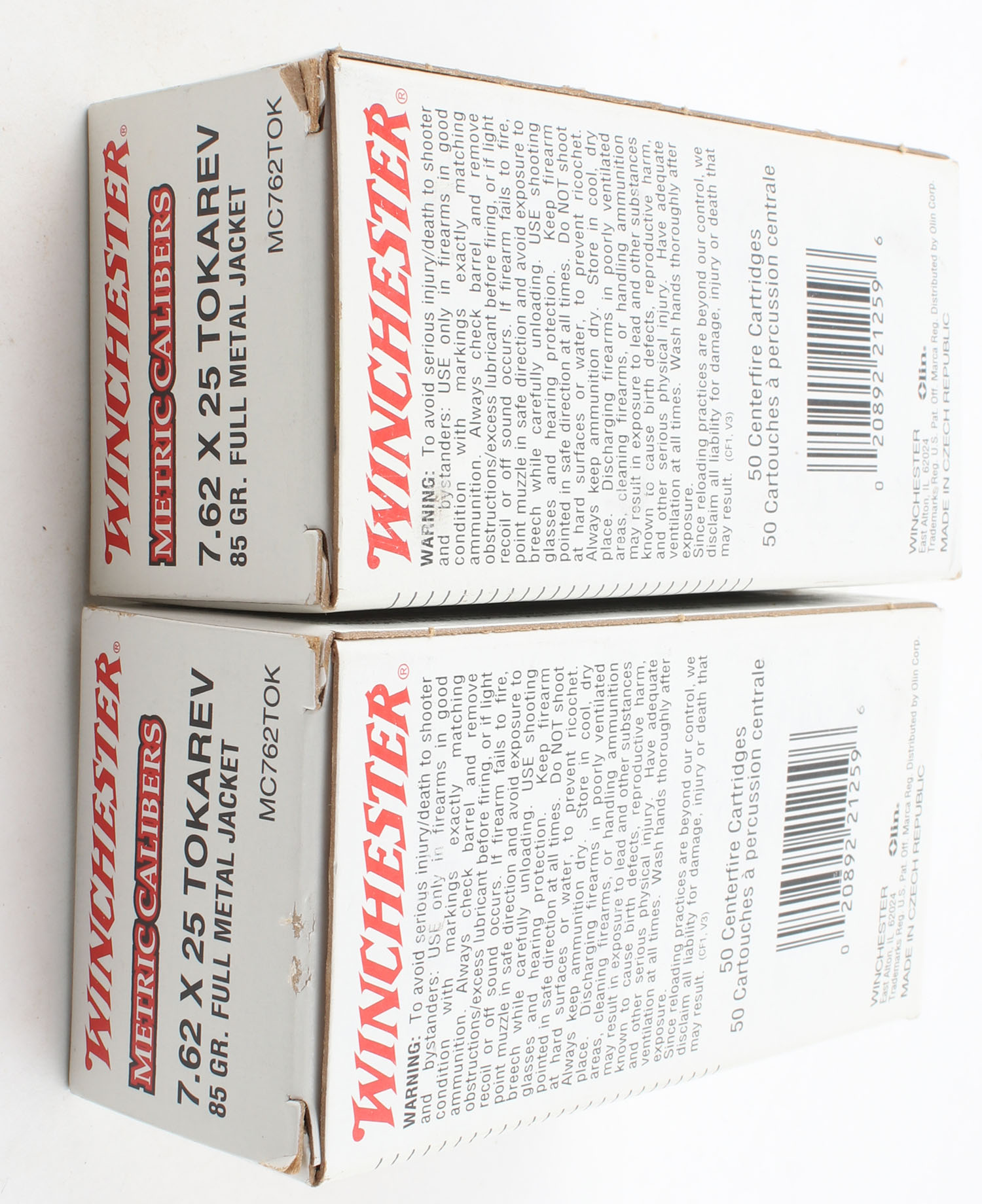 | Winchester, Lot of (2), Metric Calibers, 7.62 x 25 Tokarev, 85 G...