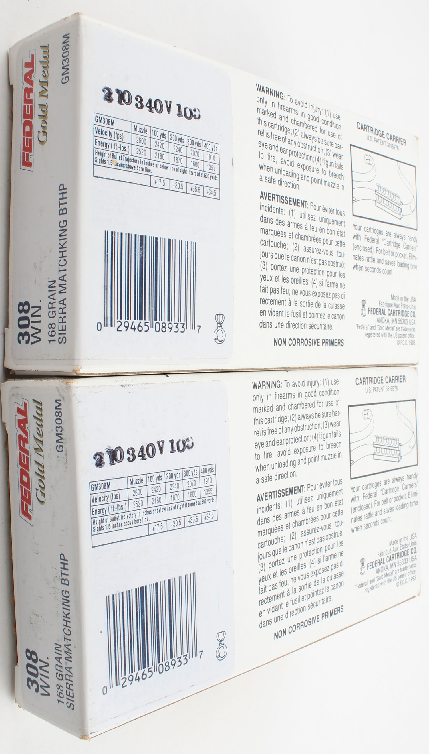 | Federal, Lot of (2), Gold Medal, .308 Winchester, 168 Grain Sier...