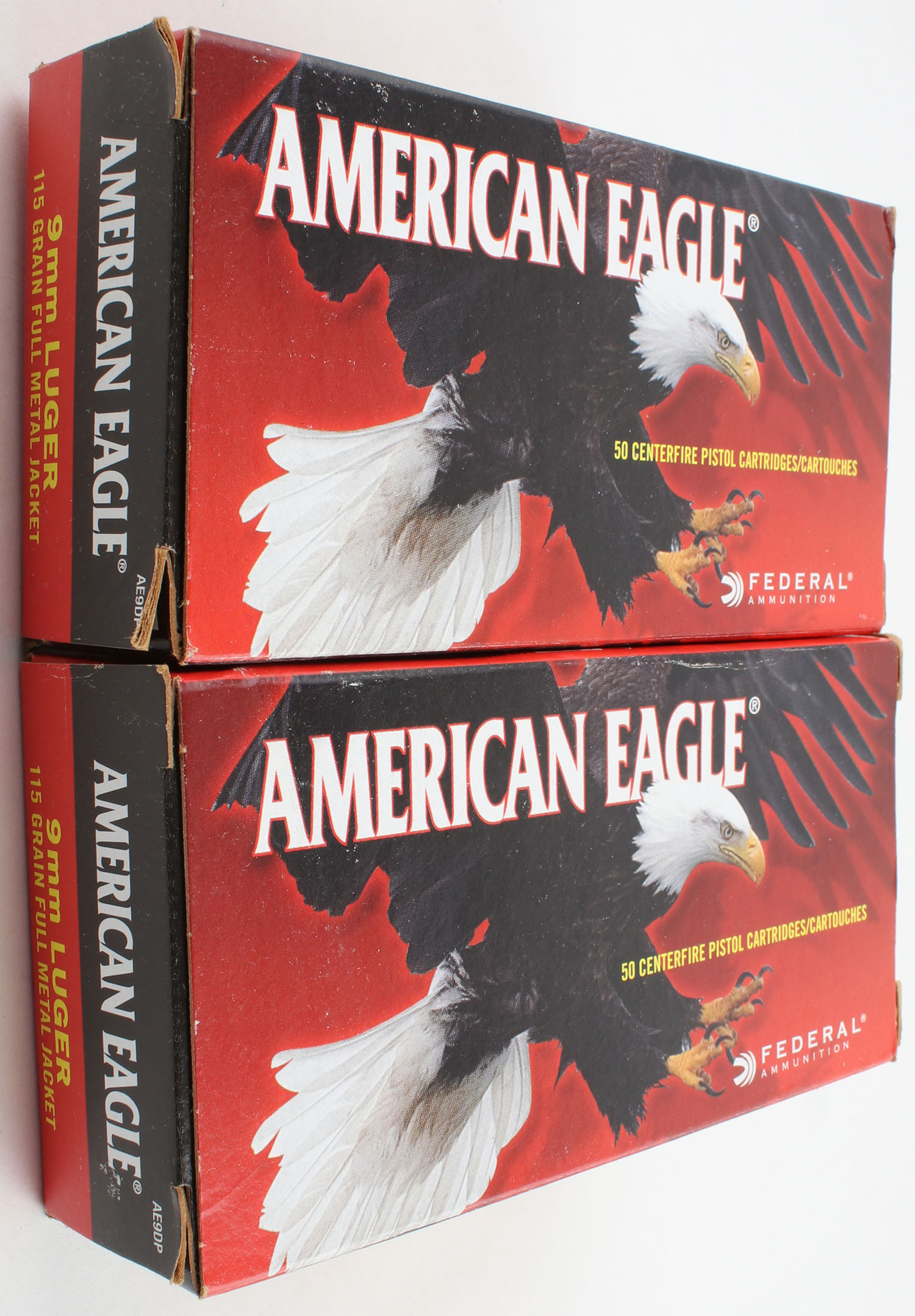 | Federal, Lot of (2), American Eagle, 9mm Luger, 115 Grain FMJ, F...