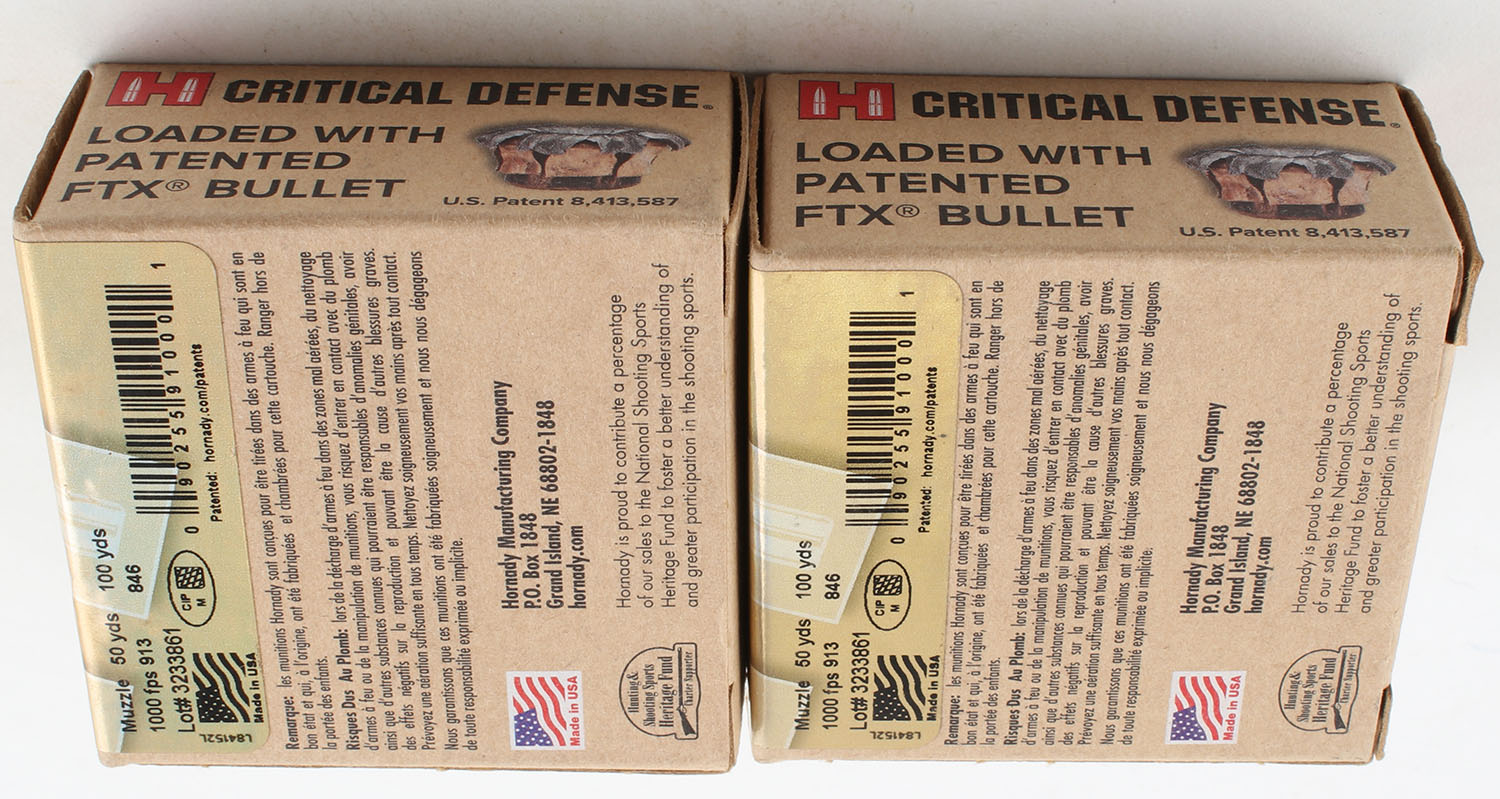 | Hornady, Lot of (2), Critical Defense, 9x18mm MAK., 95 Grain FTX...