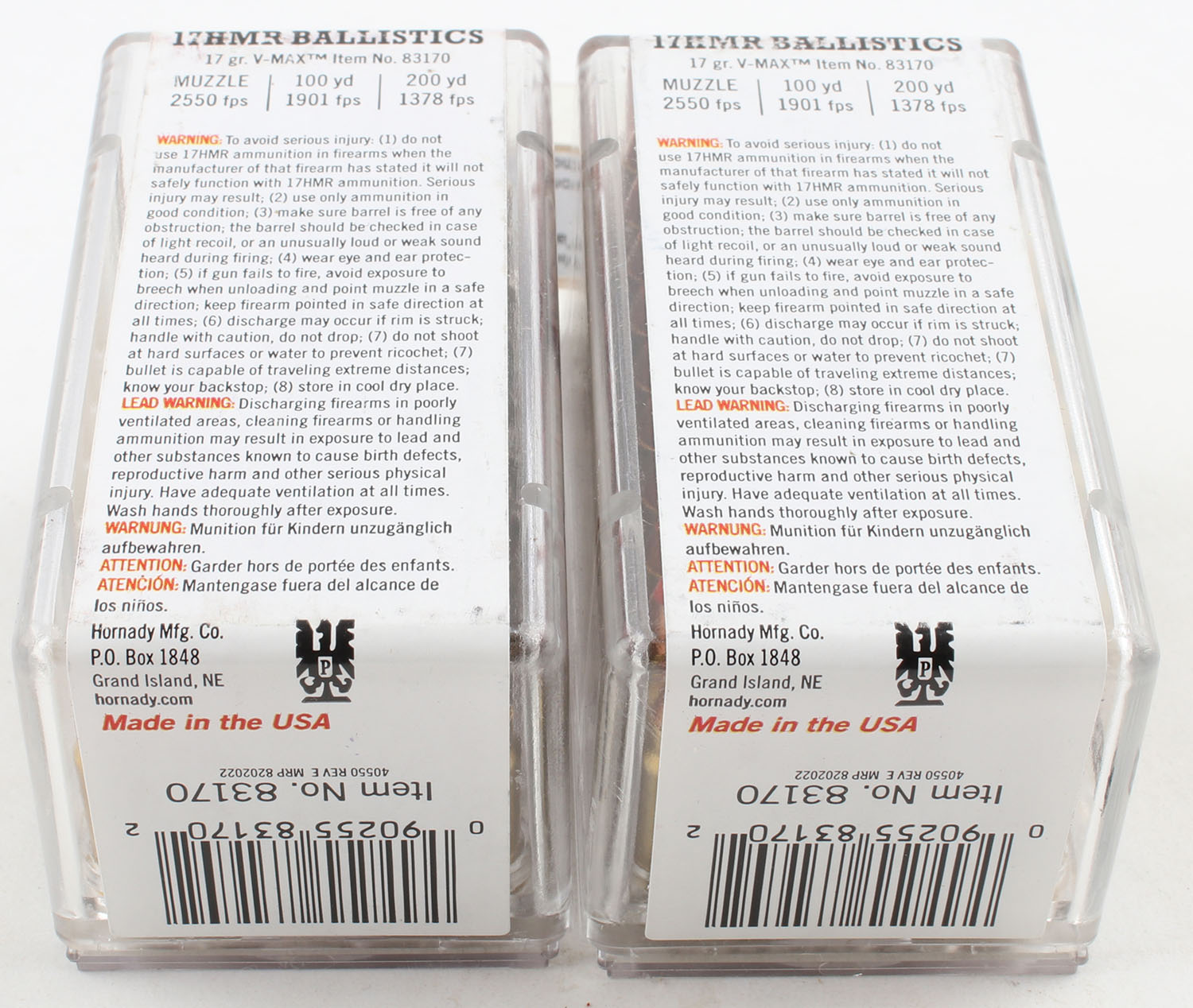 | Hornady, Lot of (2), 17 HMR, 17 Grain V-Max, FULL & SEALED, 50 ...