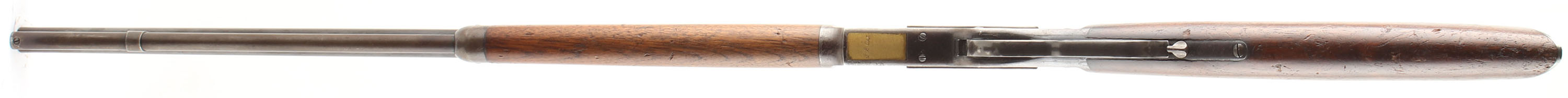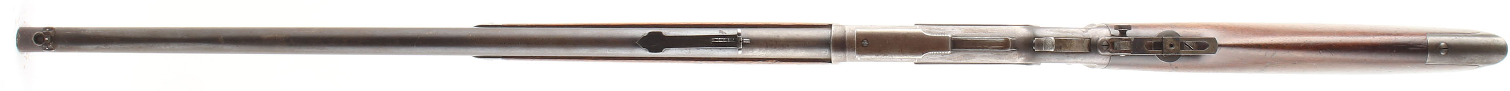 Winchester Model 1873, 3rd Variation, 32 WCF CAL., MFG: 1883, SN: 124091A, Lever Action Rifle, 24 1/4'' Round barrel, Full Mag. The original wood stocks are excellent & solid. The stocks have several minor scratches, scrapes & contusions to the very nice original finish on the stock. The forearm appears to have been cleaned some time ago, but not sanded, as it is a shade lighter than the receiver. The original metal blue finish has worn & faded to where there remains approximately 20% in the more protected areas of the receiver barrel & mag, with the balance worn gun metal gray & a thin brown patina. Some very muted outlines of case-colors remain on the case-hardened lever & hammer. Bore is excellent & bright. The receiver is fitted with a vernier large aperture flip-up tang sight, while the barrel carries the original adjustable rear & flip-up globe front sights. Buttstock carries a crescent metal buttplate. Plain trigger. A very nice & sharp appearing antique 1873 rifle. Antique, NO FFL Req. - Value: 2750 to 3500