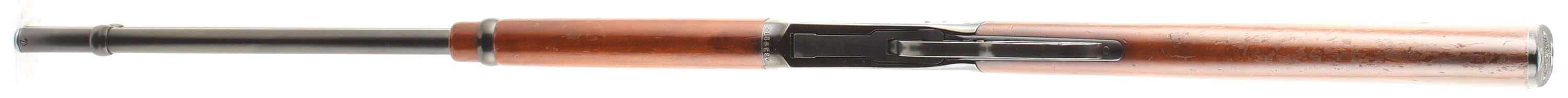 Winchester, Model 94 Carbine, CAL: 30-30 (30 WCF), MFG: 1978, SN: 4639112 , Lever Action Carbine, 20'' Round barrel, Full mag. The straight grip wood stocks are very good & solid, however someone tried to inlay something into the left side of the stock. It now has a large blue plug on the left & a small carved indent on the right. There are other minor handling marks & scratches to the thinning & flaking original finish. The original metal blue finishes rate 90% on the barrel & mag tube, while the receiver rates 80%, with much of the loss being a speckled loss & edge wear. Bore is excellent. The barrel is fitted with an adjustable rear sight & a ramped blade front sight. The left side of the receiver carries the two hole factory provision for receiver side mounted sights. Stock carries a Winchester checkered plastic buttplate. Smooth tight action. A solid & high original condition 30-30 carbine setup ready for the hunt. FFL or C&R Req. - Value: 400 to 800