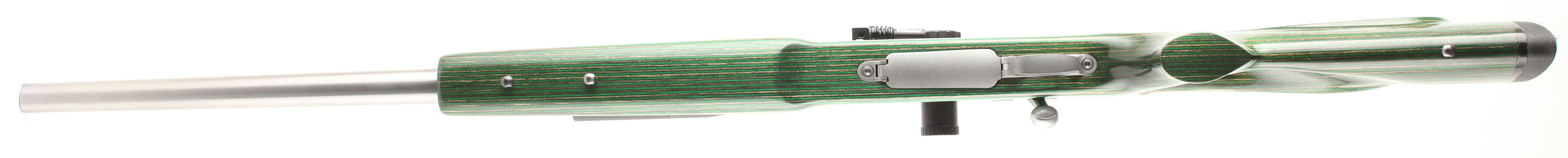 CUSTOM Remington, Model 700, CAL: 204 Ruger, MFG: Modern, SN: S6757161, Bolt Action Rifle, 26'' round barrel, The green, tan & black laminated & thumbhole pistol grip target wood stock, with forend vents, thumb rest & raised cheek is excellent. The custom stainless steel heavy barrel is excellent. The original metal stainless finish on the receiver rates excellent. Bore is excellent. The receiver holds a STAC Sightron 4-20x50mm Long Rang scope, with sun shade & a Wheeler Level, held by Weaver rings on a 7'' Weaver picatinny rail. No open sight provisions. Custom lightweight trigger. Trigger pull is extremely light, so much so, that once cocked & with safety off, the firing pin occasionally fires if the bolt hand is wiggled. Buttstock carries a Decelerator solid recoil pad. Sling studs. This custom bench rifle comes from the collection of Rod Sheets. FFL Req. - Value: 1000 to 1500