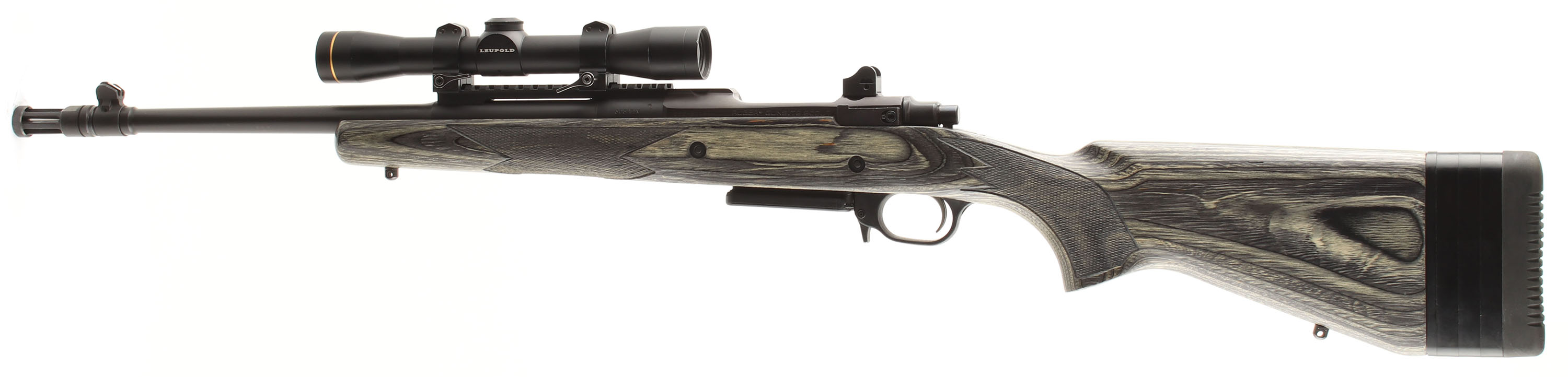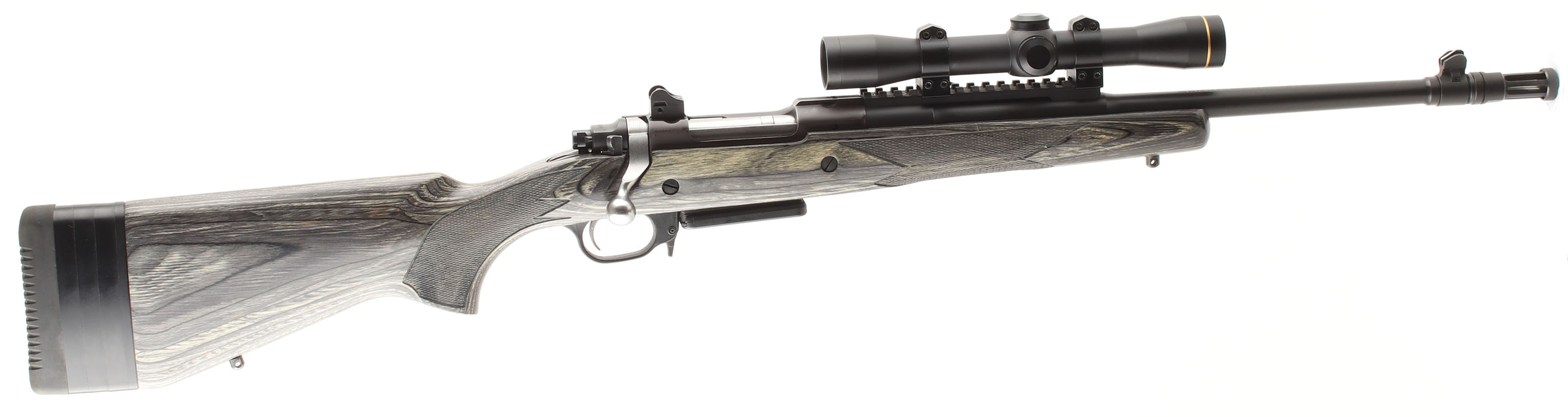 Ruger, Model Gunsite Scout, 308 WIN Cal., MFG. 2014, SN: 680-31137, Bolt Action Rifle, 19'' Tapered round barrel, including the flash hider. To develop the Gunsite Scout, Ruger worked closely with Gunsite Training Center Academy in the development of the rifle, in order to meet the criteria of the modern scout rifle. These little rifles are fairly rare & becoming collectible, as they were a distributor exclusive limited supply run. The factory checkered & flat pistol grip laminated stock is excellent, with a few minor scrapes or light contusions. The factory metal finishes rate 95% overall. Three-position safety. The receiver has integral scope rails, with a receiver mounted aperture sight, with protective wings. The barrel carries a picatinny rail mounted Leupold FX-II 2.5X28mm Scout scope on quick lever release rings & a non-glare, protected blade front sight. Buttstock carries the factory solid recoil pad, with 3 factory 1/2'' spacers, current length LOP of 14 1/4''. Stock carries factory sling studs. Detachable Ruger magazine. A unique high quality, bolt action sporting rifle, with collectability. FFL Req. - Value: 800 to 1200