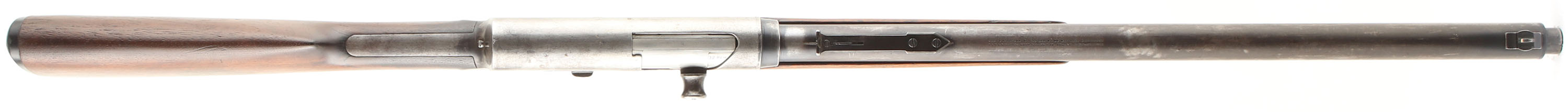 Remington, Model 8, 32 REM CAL, MFG. 1907, SN: 2735, Semi-Auto Rifle, 22'' barrel. This is a 2nd year early production rifle. The original straight grip stock is very good & solid, despite a couple of short stress cracks emanating from the end of the upper tang. Nearly all of the original finish has evenly worn off from use & there are minor handling marks, light scratches & contusions. The stock displays the early wrist cheeks where the stock meets the back edge of the receiver. The forend is good & solid as well, despite a couple of 2'' & 2 1/2'' cracks on the backend & some missing slivers of wood to the edge & left side corner. The finish has worn thin & there are numerous minor scratches, scrapes & contusions. The original metal blue finish has worn mostly gun metal gray, but with spotty remnants of blue in more protected areas. There is speckling & spots of cleaned pitting, found mostly on the receiver. The rifle carries the early first variation safety lever. The rifle once carried a tang sight, but currently only has a replaced filler screw in the factory provision. The barrel is fitted with an adjustable rear sight & a Marble No. 2 white bead front sight. Bore is excellent. Stock carries a modern reproduction, checkered Remington buttplate, which is a bit undersized, leaving the wood proud along the edges. 5 rd fixed magazine. An early production rifle, with early production features. FFL or C&R Req. - Value: 400 to 800