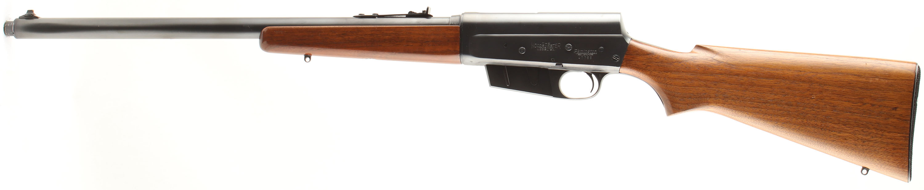 Remington, Model 81, 35 REM CAL, MFG. 1949, SN: 47766, Semi-Auto Rifle, 22'' barrel. The original flat pistol grip wood stocks are excellent, with very few tiny to minor handling marks to the excellent original finish. While the finish does appear original, the metal is slightly proud to the metal along the edges of the lower tang. The original metal blue finish rates 98% overall. The barrel carries the standard front & rear sights. Bore is excellent, clean & bright. Stock carries the original Remington checkered metal buttplate. 4 rd fixed magazine. Sling studs in stock & forend. An overall excellent & original collectors condition 81 rifle. FFL or C&R Req. - Value: 1000 to 1500