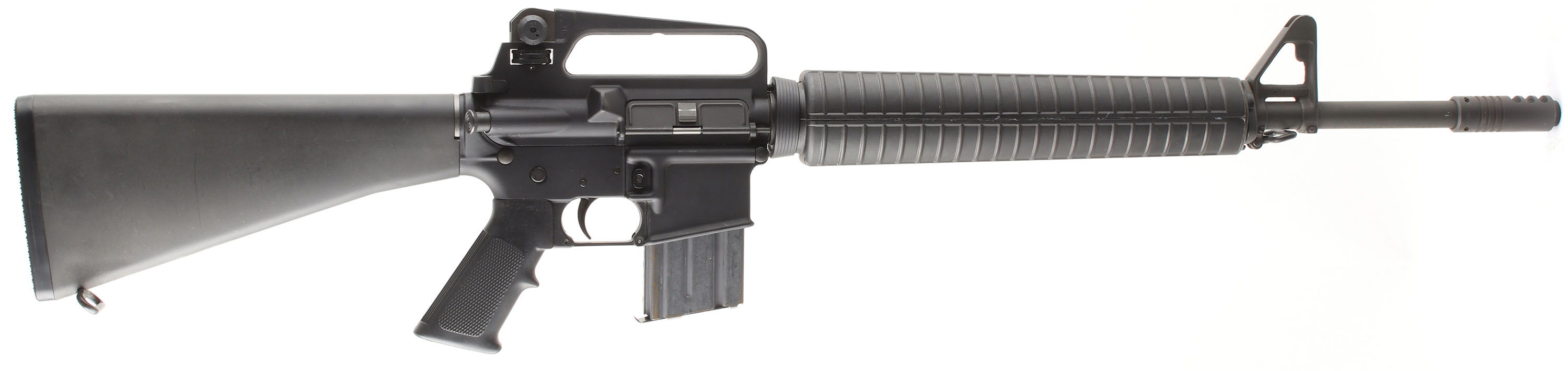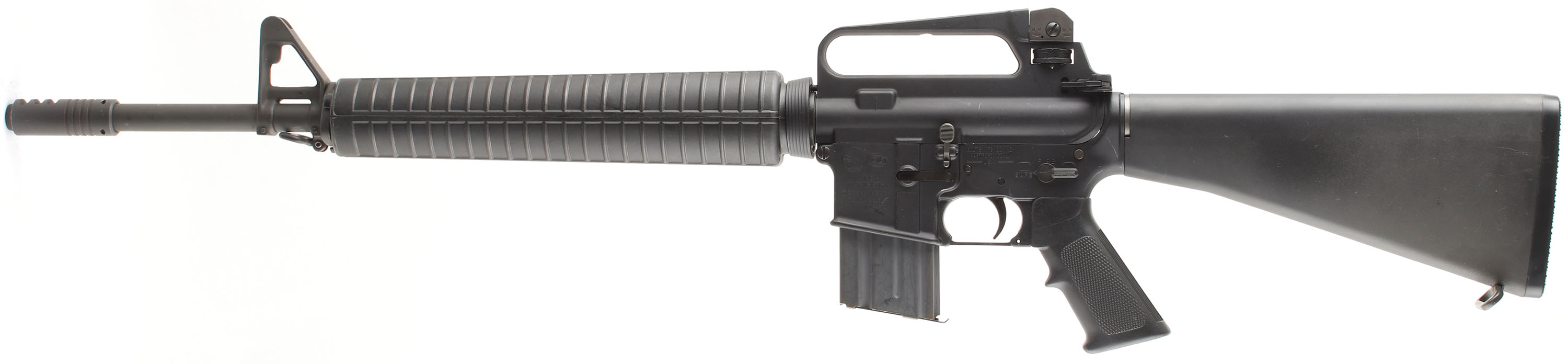 Colt, Match Target HBAR (AR-15), CAL: 223 Rem, MFG: Modern. SN: CMH026379, Semi Auto Rifle, 20'' Barrel. The factory plastic A2 style furniture is excellent with light wear from use. The anodized finish on the gun is very good, near excellent, with some wear including small dings & surface scratches concentrated on the left side of the gun. Bore is excellent, bright with strong rifling. Mechanically solid, seems to function well. The gun has an elevation adjustable front sight that is integral to the gas block. The carry handle upper receiver has a windage & elevation adjustable rear sight. Comes with a 20 round magazine. FFL Req. - Value: 500 to 1000