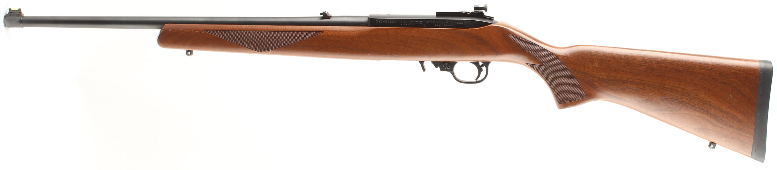 Ruger, Model 10/22 SP, CAL: 22 LR, MFG: 1993, SN: 237-52594, Semi Auto Rifle, 18 1/2'' barrel. The original checkered & flat pistol grip wood stock is excellent, with a few tiny to minor scrapes, scratches & contusions to the excellent original finish. The original metal blue finishes rates 98%. Bore is excellent & bright. The rifle is mounted with a Williams aperture disk receiver sight, while the barrel holds a standard folding leaf rear sight & green fiber optic rod front sight. Stock carries a Ruger solid black rubber recoil pad. Sling studs. Detachable mag. Excellent overall. FFL Req. - Value: 300 to 450
