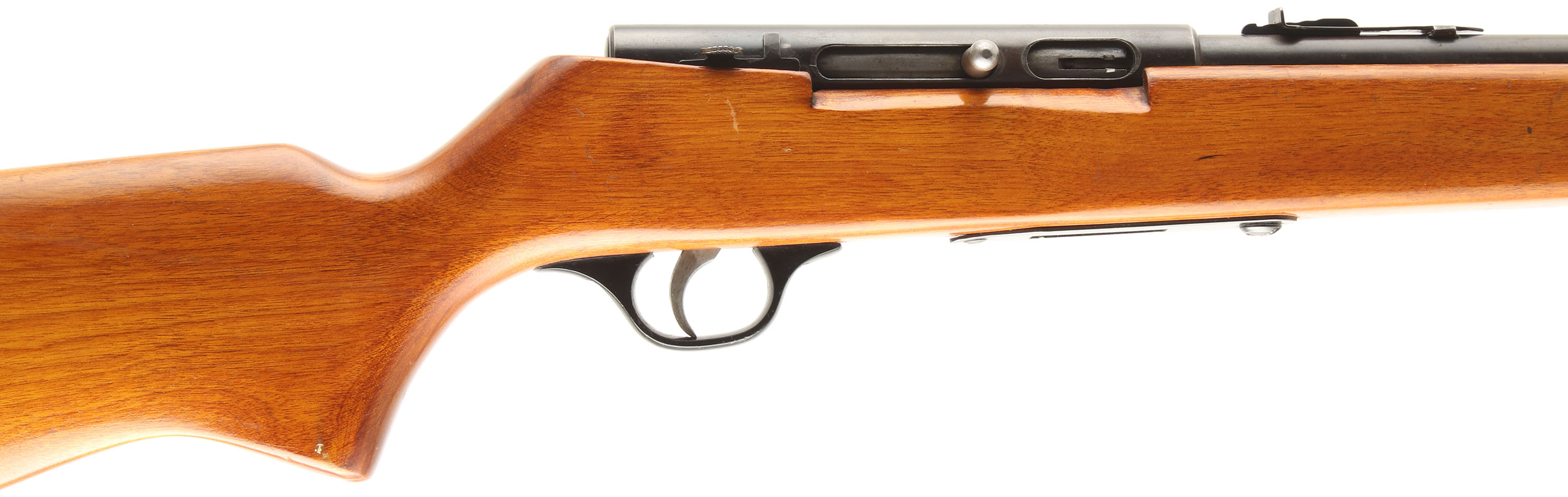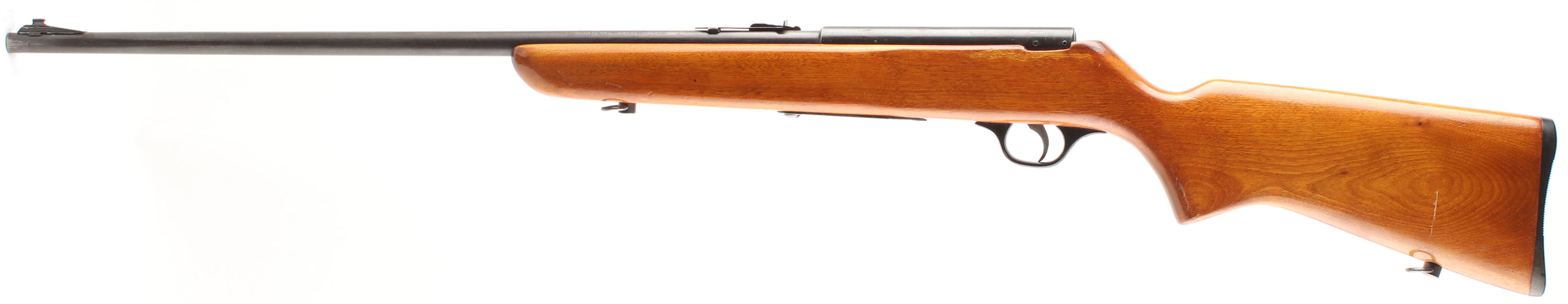 Marlin, Model A1C, CAL: 22LR, MFG: 1941-46, SN: None, Semi Auto Rifle, 24'' barrel. The original flat pistol grip stock is excellent, with a few minor handling marks to a fresh refinish. The original metal blue finish rates 60% on the receiver, 40% on the barrel. Bore is excellent. The barrel carries an adjustable rear & a ramped blade front sights. Stock carries a serrated plastic buttplate. No mag. FFL or C&R Req. - Value: 100 to 200