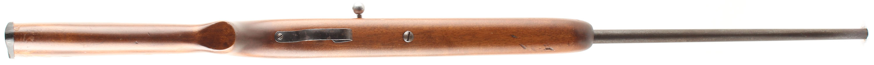 Marlin, Model 100, CAL: 22 S.L.LR, MFG: 1935-50, SN: NONE, Bolt Action Single Shot Rifle, 24'' barrel. The flat pistol grip wood stock is excellent, with several minor to small handling marks or contusions to a mix of original finish, with an added layer of finish. There is some finish scrapes or flaking damage on the left side of the stock. The original metal blue finish rates 70% on receiver, but has worn mostly gun metal gray on the barrel, with a spotty brown patina. The barrel has an adjustable rear & blade front sights. The stock carries a replaced black plastic buttplate, which is oversized & hangs well over at the toe, needs fitting. Silver bolt handle. FFL or C&R Req. - Value: 80 to 150