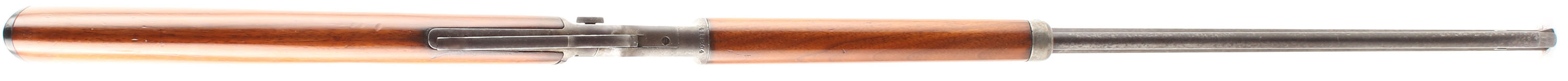 Marlin, Model 97, .22 S. L. LR Cal., MFG. 1910, SN: 411804, Lever Action Rifle, 24'' Octagon barrel, The original wood stocks are very good, as having been sanded & nicely refinished. There are several minor contusions, scraps & scuffs to the very nice high gloss finish. The metal sits proud to the wood along the edges of the tangs & receiver. The metal on the barrel & tube has worn mostly gun metal gray, with a thin spotty brown patina. The case-hardened receiver & lever has also faded to gun metal gray, with a thin brown patina, Bore is very good. The barrel carries an adjustable rear & low profile blade front sights. The stock carries a Marlin checkered plastic buttplate. Tight smooth action. FFL or C&R Req. - Value: 400 to 800