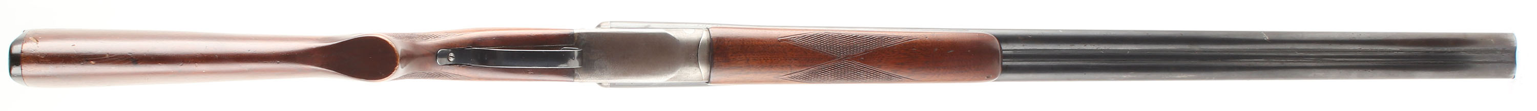 Stevens (Savage), Model 5100, CAL: 20 GA, MFG: 1941-48, SN: NSN, Break Action SxS Shotgun, 28'' barrel. The checkered flat pistol grip stocks are very good & solid. There is a small hairline crack on the left side of the wrist, along with minor contusions, scrapes & dings to the finish. The metal blue finish on the barrels rates 50% & the case-hardened receiver has worn to a mix of metal gray & brown patina, with remnants of case-colors in protected areas. There's a simple engraving of a dog on the left side of the receiver. Bores are excellent, with visible striations from use. The barrel holds a small mid rib bead & front bead. Stock has a grooved plastic buttplate. Double triggers. According to John Callahan, Arms Historian for Savage Arms, guns stamped 5100 were made by the J. Stevens Arms Division of Savage from 1941 to 48. Appx 50,000 were made in that time frame. He indicated that the shotgun is basically a 311 & the 5100 stamp indicates a change in frame design to distinguish between the old & new designs. FFL or C&R Req. - Value: 200 to 400