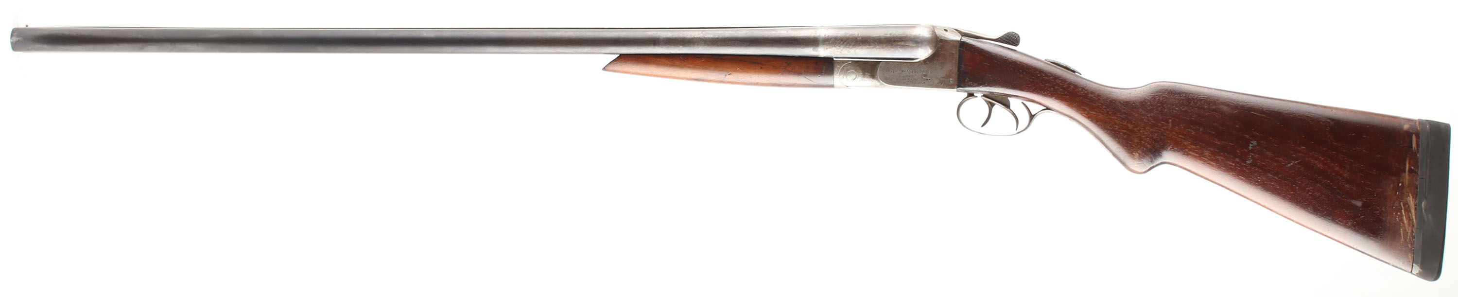 NR Davis & Sons, Model ''AJAX'', CAL: 12GA, MFG: 1900's - 30's, D2070, Break Action SxS, Choke: IC/IM, 30'' barrel. The original round knob wood stocks are good & solid, having been sanded & refinished at one time. There are small hairline cracks, contusions, scratches, scrapes & dings throughout. The blued finish on the barrel rates 60%, & the receiver has fully worn to metal gray with areas toned to a brown patina. Bores are very good, with intermittent roughness. The solid matted rib holds a single front bead. The rib is slightly lifted 2'' from the front bead. Stock has a solid black rubber recoil pad. Double triggers. FFL or C&R Req. - Value: 150 to 300