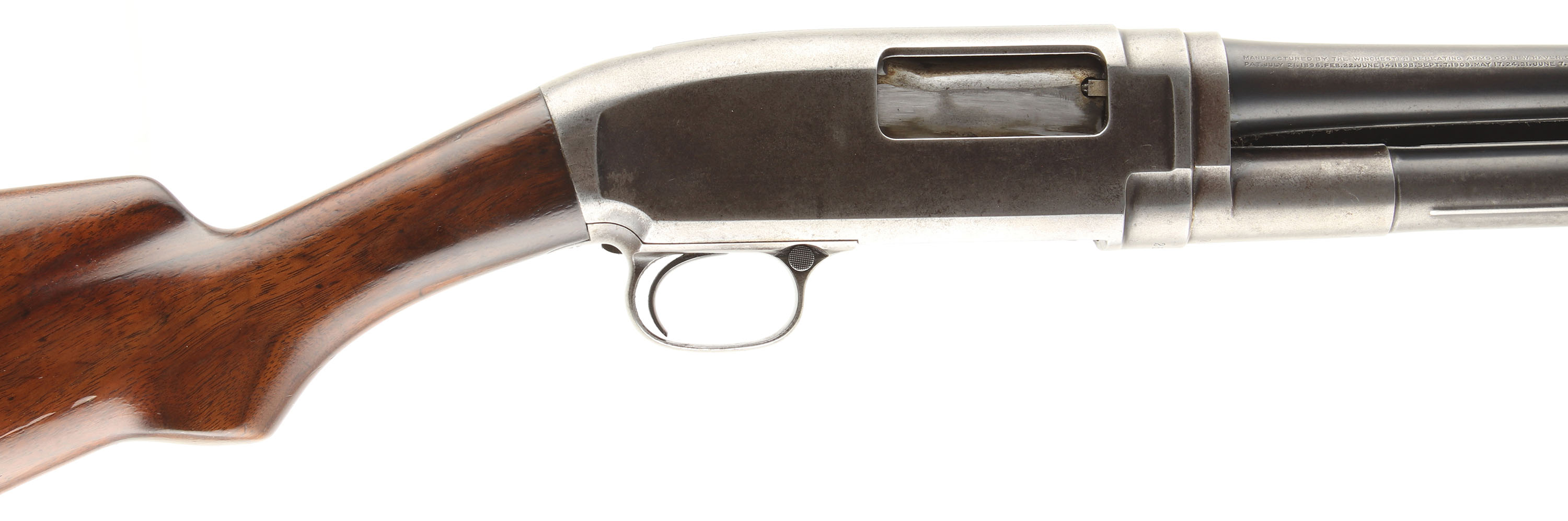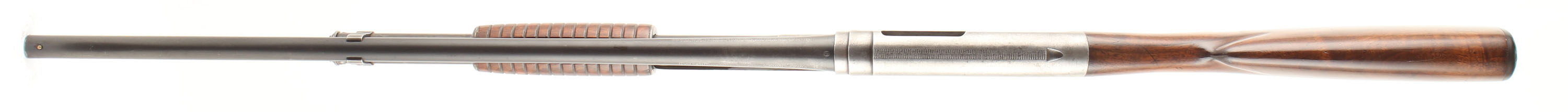 Winchester, Model 1912 Take-Down, CAL: 20 GA., MFG: 1913, SN: 25728, Pump Action, Choke: FULL, 25'' barrel. The original capped pistol grip wood stocks are excellent having been lightly sanded & refinished. There are smoothed contusions, dings & a small spots of flaking on the belly of the stock. The original blued finish rates 40% coverage on barrel. The receiver & mage tube have almost fully worn to a gun metal gray, with remnants of blue & areas toned to a brown patina. Bore is very good, with consistent frost/haze & a couple scars. The barrel holds a front bead. Stock has a Winchester checkered plastic buttplate. FFL or C&R Req. - Value: 400 to 700