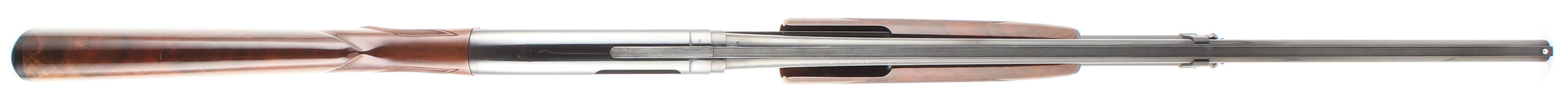 BOXED, Browning, Model 12 Grade 5, CAL; 28GA, MFG: 1991-92, SN: 02641NM972, Pump Action Shotgun, Choke: MOD, 2 3/4'' Chamber, 26'' barrel. The deluxe, checkered & capped pistol grip stock & forend are excellent. The original high gloss finish is excellent, with light storage marks. The original blued finish on the barrel/receiver rates 99%+ & the mag tube rates 97%, with some very minimal wear under the forend. The receiver displays beautiful scroll engravings with gold inlaid bird game scenes on both sides. Bore is mint. The ventilated rib holds a steel front bead. Stock has a factory Browning buttplate. Comes in factory box, with paperwork & original packaging. Consignor states this gun has never been fired outside factory. Only 5000 produced. A high condition, collectors grade shotgun. FFL Req. - Value: 1750 to 2750